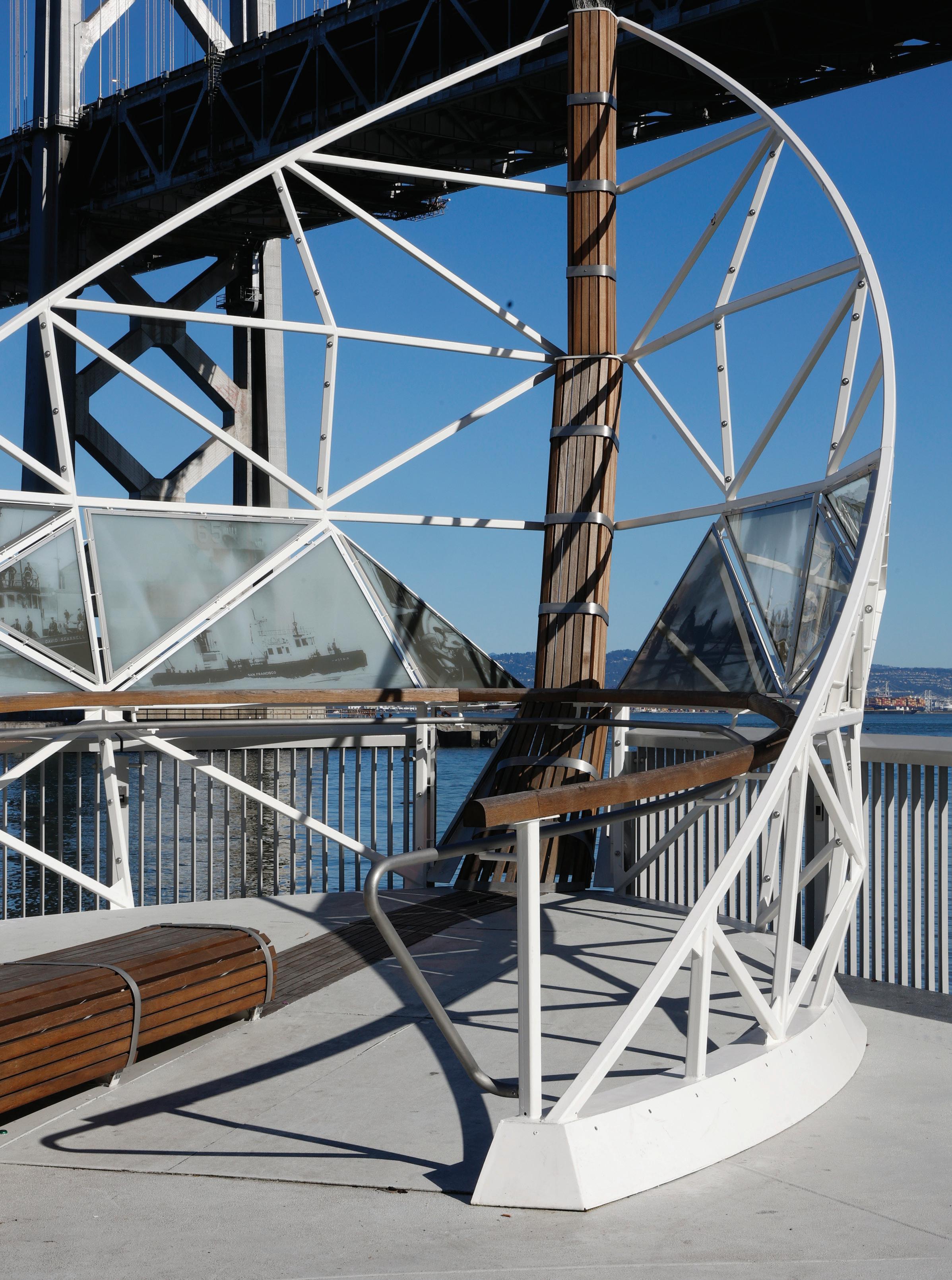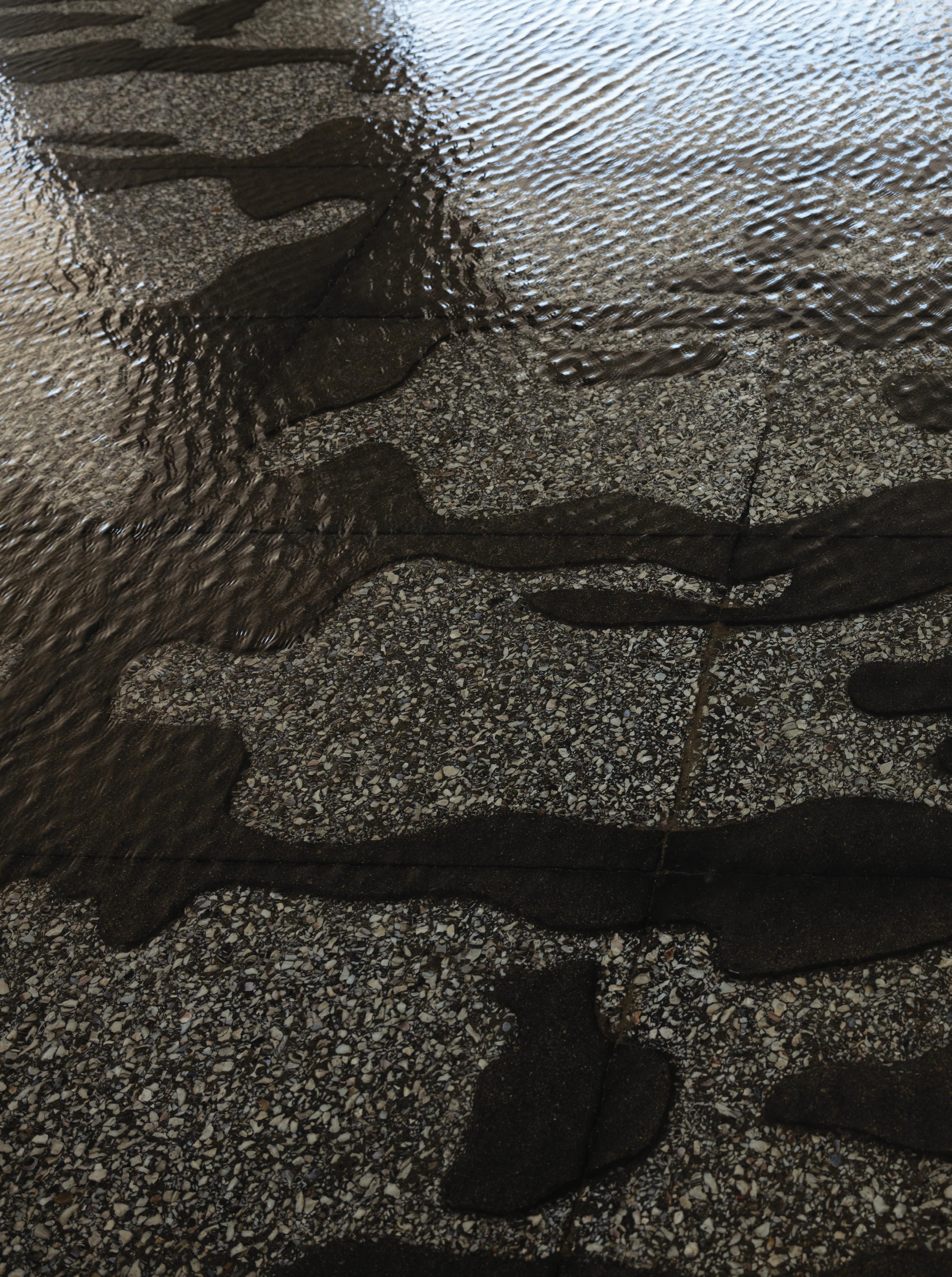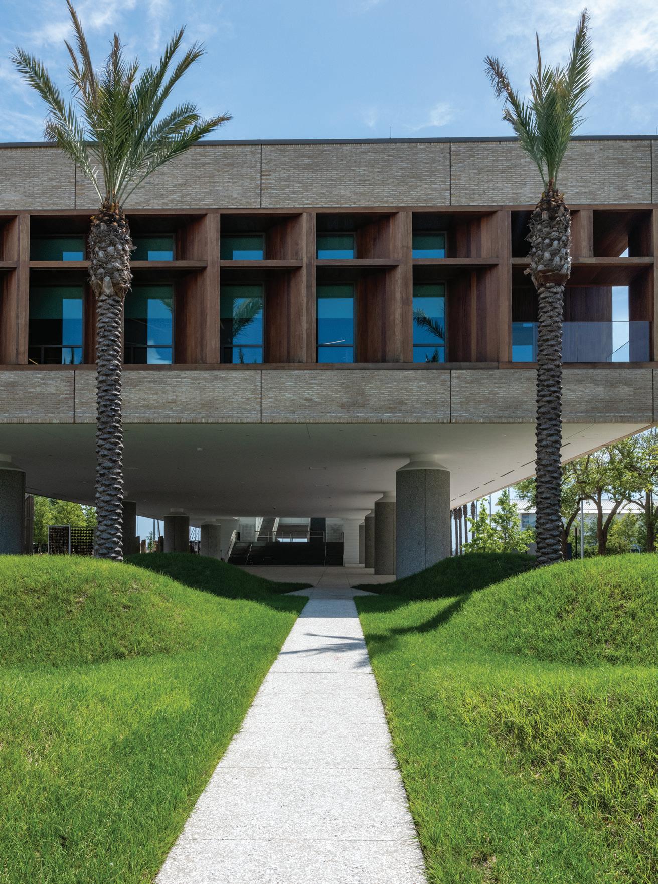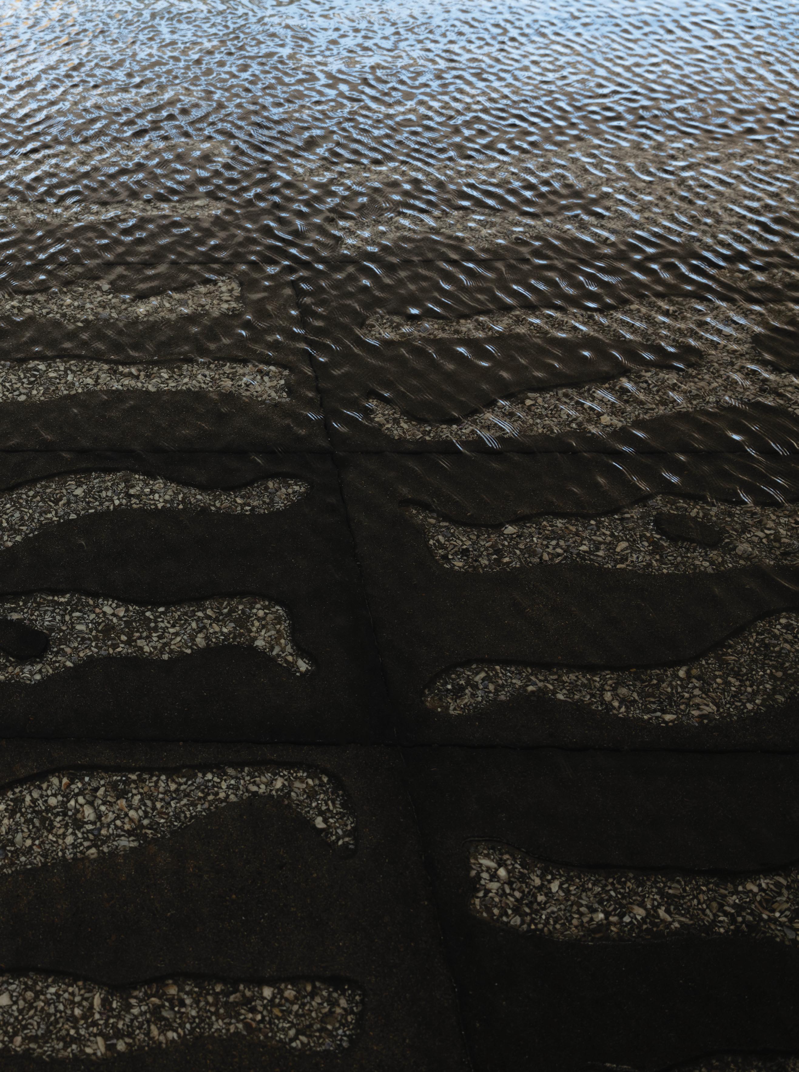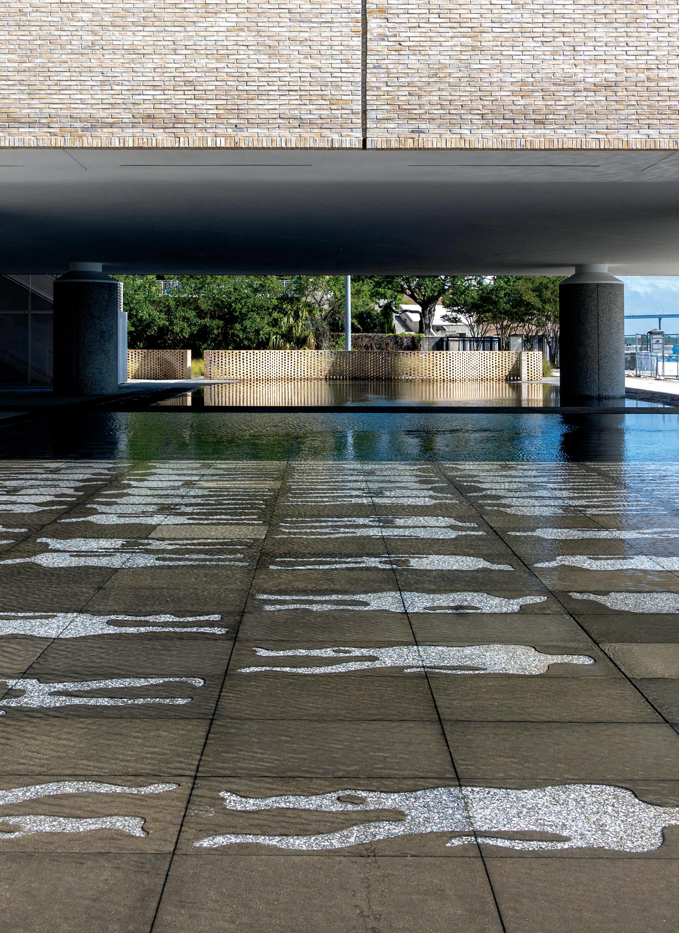 Or consider Oakland’s Splash Pad Park, where Hood re-envisioned the underpass below the intrusive I-580, activating mundane parking spaces and curbs into a vibrant community gathering place, now home to the East Bay’s largest farmer’s market. And one of his more recent projects, the sacred grounds of the International African American Museum in Charleston, South Carolina, where, among other elements, Hood created an infinityedge fountain engraved with abstract forms suggesting figures bound in slave ship bowels to mark the threshold where more than 40 percent of the African diaspora arrived as enslaved chattel. “Our work is about fusing and disrupting and being really deliberate about how we are doing things based on the places in which we are making things,” he explains.