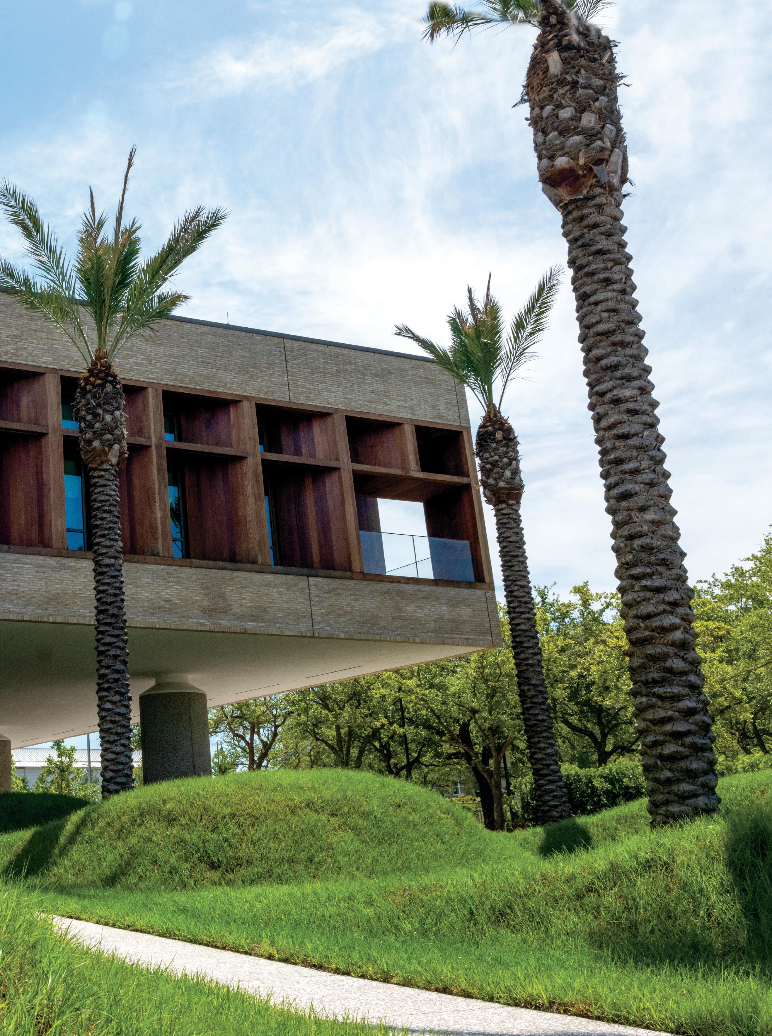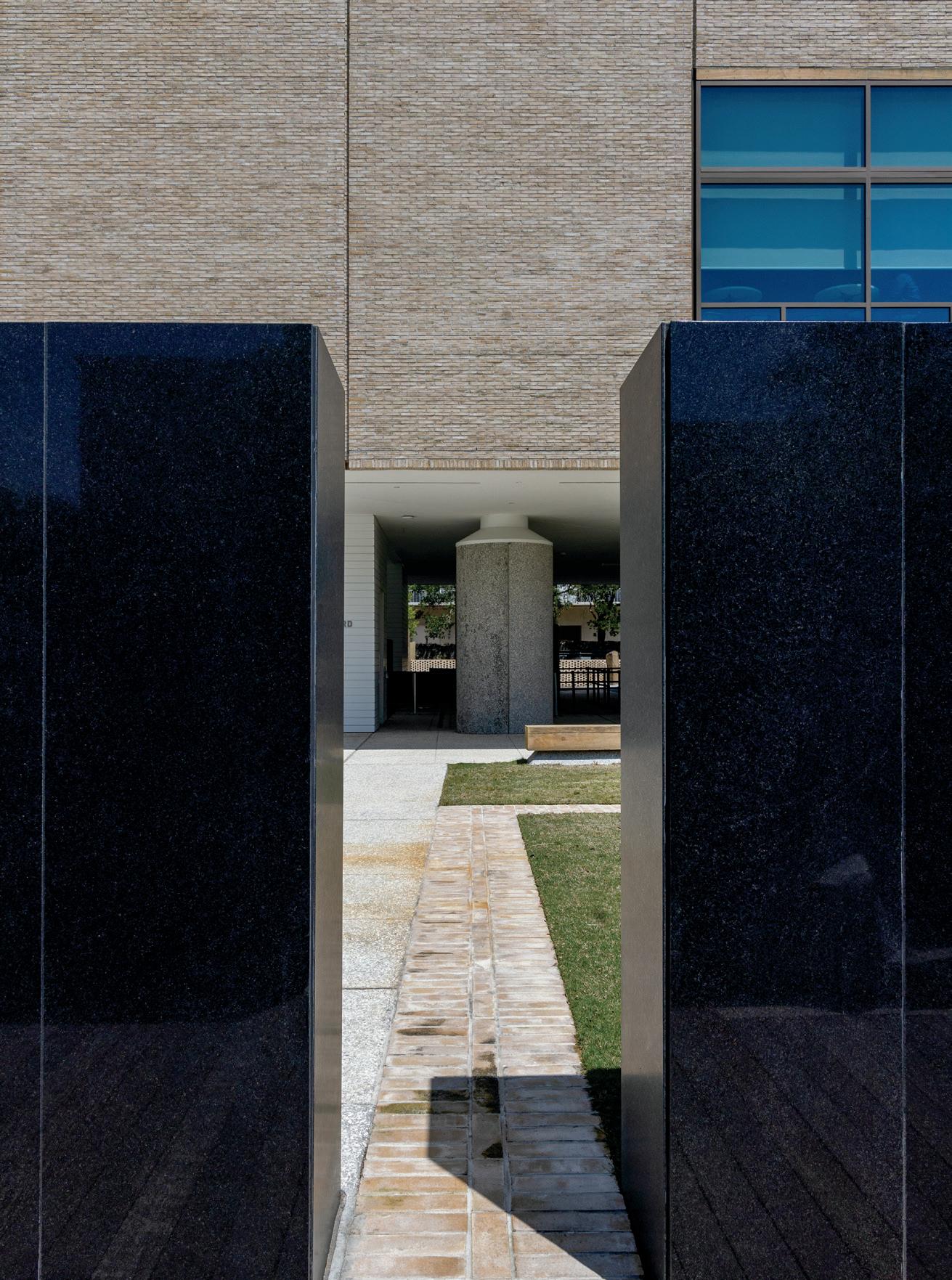 Moody Nolan and Pei Cobb Freed & Partners’ unrhetorical building design “floats” on cylinderlike piers, leaving the sacred ground below open for Hood’s activation. Black marble walls suggest the “hush harbors” tradition—landscapes where Africans would gather in secret to share and keep alive stories from their homeland.