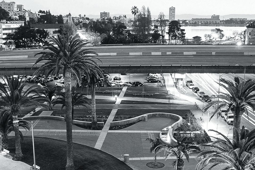 Two doors down from the live/work courtyard—a former sign factory—that is Hood Design Studio headquarters, a onestory brick building with barred door and windows boasts a hand-painted “American Casket Company” sign. Beside it, a small house’s façade features a quirky mural, with a discarded toilet-turned-planter as yard art. Across the street, chain link fencing encircles a scruffy abandoned lot. Today West Oakland, the city’s oldest neighborhood and birthplace of the Black Panthers, as well as the focus of Oakland’s “General Neighborhood