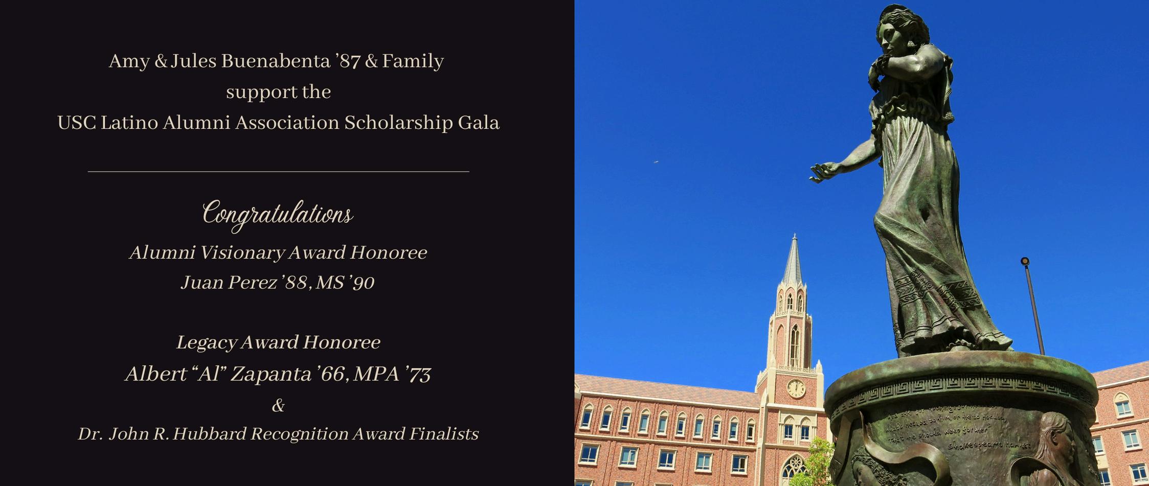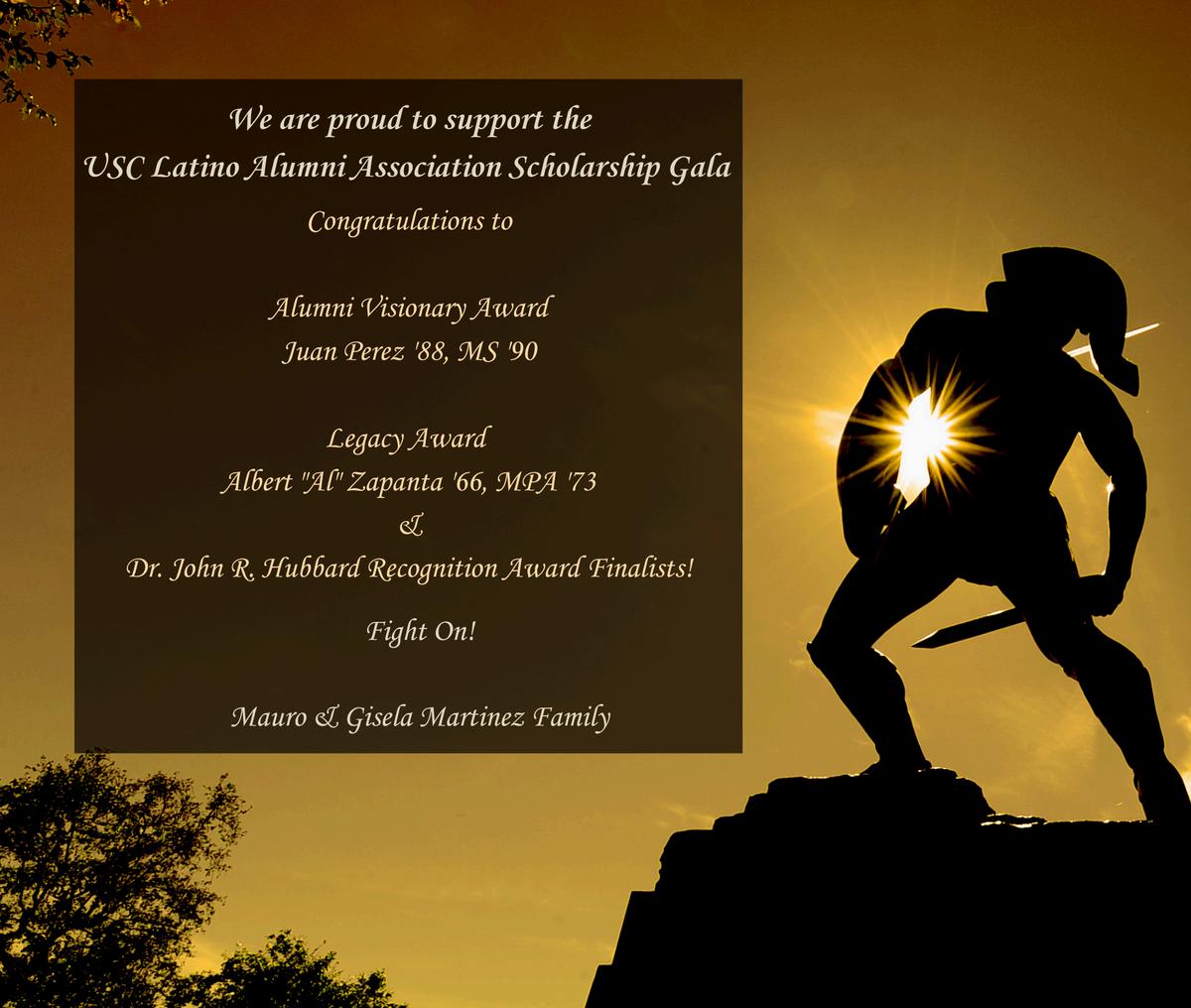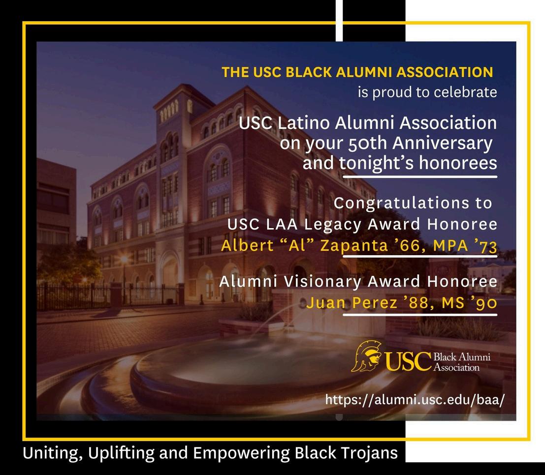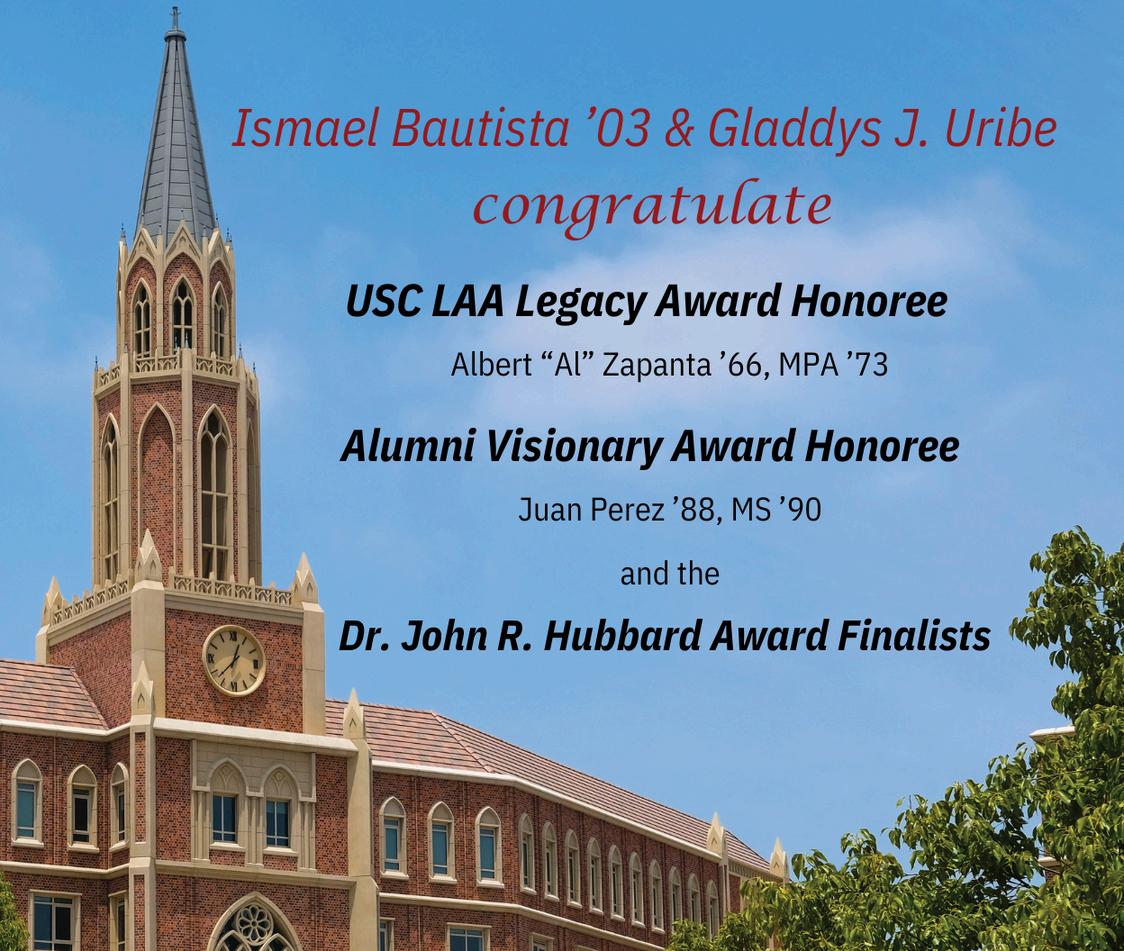 We proudly support the USC Latino Alumni Association Scholarship Gala Congratulations Legacy Award Honoree
