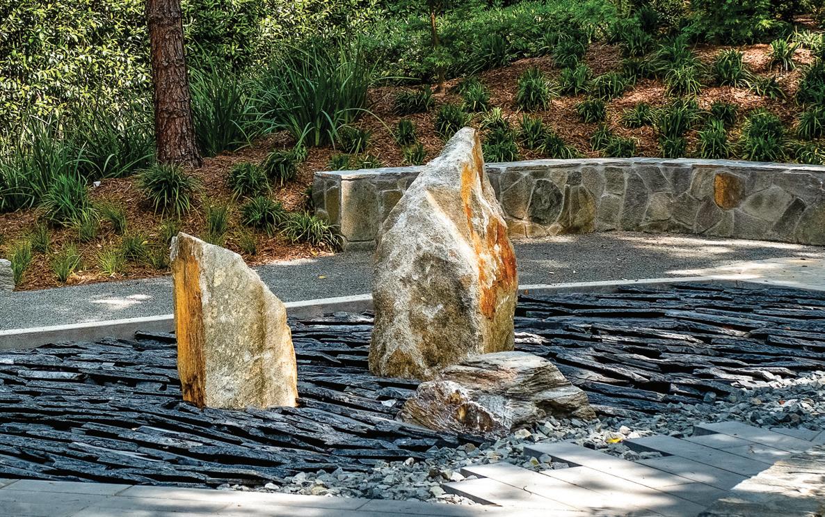 Los Angeles River Terrazzo created from a mixture of aggregate and debris scooped directly from the river by local resident Michael Tessler — is part of the Architecture and Fine Arts Library’s sustainable materials collection. Head librarian Shannon Marie Robinson (right) says, “Materials tell stories, and those stories deeply connect us to objects and the built environment.”