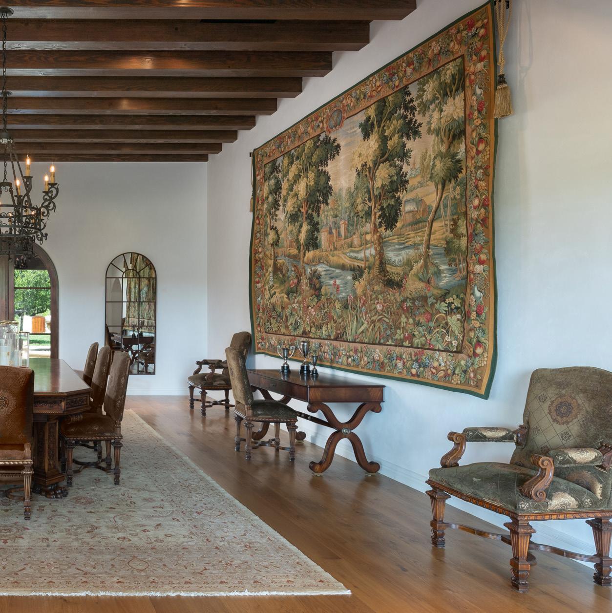 Set privately away from the farm operation is the estate’s sprawling 8500 sf main residence which recently underwent an extensive renovation. The home has an elegant Spanish hacienda style and features luxurious and spacious rooms featuring vaulted beamed ceilings, dramatic large custom windows to take in the nature and landscape, high end finishes including hand-hewn quarter sawn French oak floors, five fireplaces, stone countertops, and custom cabinetry throughout. The 5 en-suite bedrooms are well appointed and include walk-in closets in all interior rooms. The kitchen is enclosed and private with a classic yet festive Spanish color palette, stone countertops, and custom oak cabinetry throughout. The floorplan is designed to take advantage of California’s indoor/outdoor living and entertaining in this home is effortless. The 14’ covered patios, with built-in sound and heaters, leads to a backyard that is highlighted by professionally designed gardens by noted landscape architect and designer Puck Erickson of Arcadia Studios. The home is surrounded by mature specimen trees and extensive entertaining areas including a luxurious pool, gas kit wood burning fire pit, deer fenced orchard, vegetable gardens, and “secret” shaded seating area to take in the river atmosphere. A perfect place to relax or entertain guests. A spacious 3- car garage features a 50A service suitable to charge 2 EV/ Teslas simultaneously at approximately 25 mi/hr.