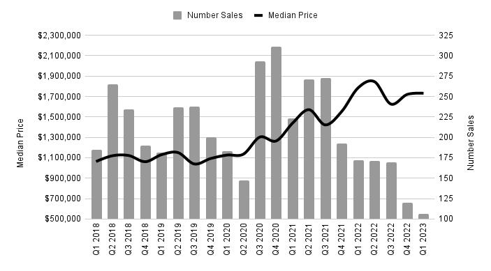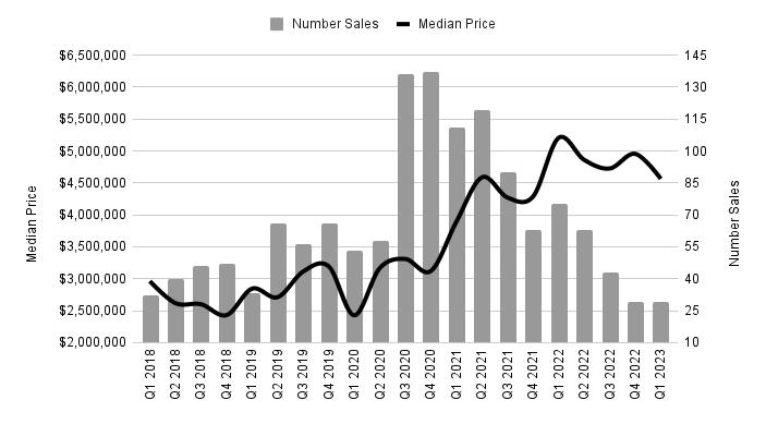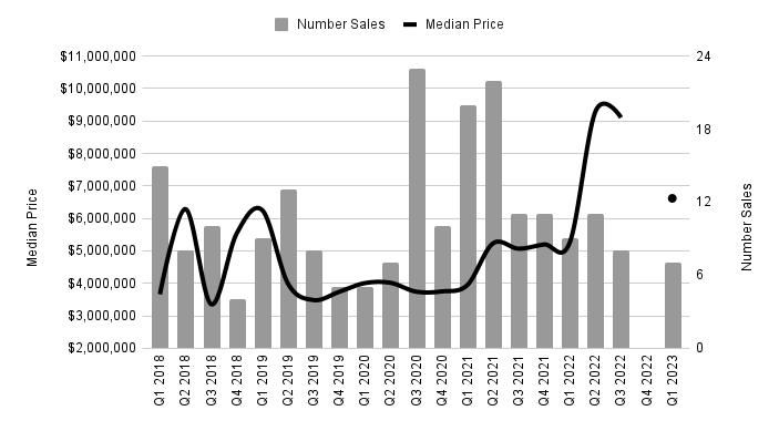 MEDIAN SALES PRICE $6,215,000 +14% change from 2022