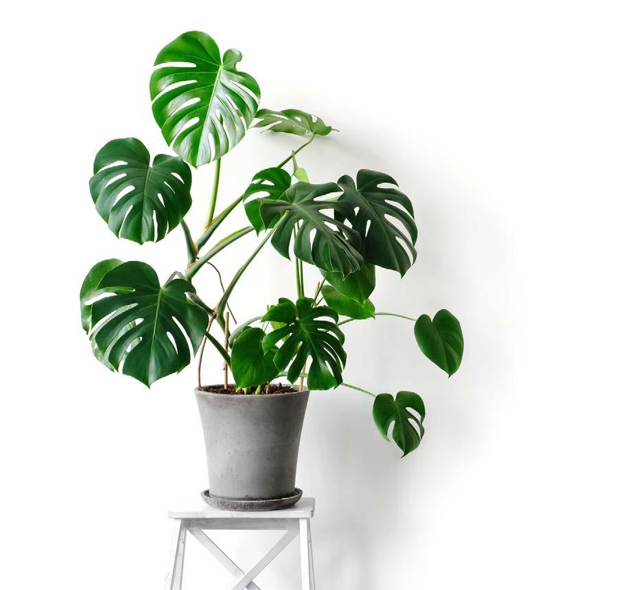 De grafische vormen van het blad maken van de Monstera deliciosa een eyecatcher. Het fijne is dat de plant met een scheut water op zijn tijd en voldoende licht eigenlijk vanzelf gaat. Sta niet verbaasd te kijken als er bij jou nog geen gaten in het blad verschijnen; naarmate de plant ouder wordt en het blad groter, komen er ook meer gaten in. Let wel op: bonte soorten (met wit in het blad) zijn uniek om te zien, maar ook kwetsbaarder en vergen meer zorg.