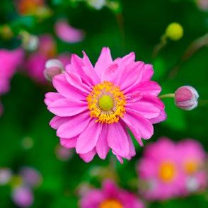Deze charmante vaste plant bloeit laat in de zomer en de herfst met roze of witte bloemen. Kies bijvoorbeeld de opvallende cultivar ‘Pamina’. Zet Japanse herfstanemonen op een plekje in de halfschaduw, daar bloeien ze langer en beter dan op een zonnige standplaats. De plant houdt niet van droogte. Ook Japanse herfstanemonen trekken bijen en vlinders aan, zodat er tot ver in het najaar voedsel is te vinden voor de insecten. De bloemen steken een flink stuk boven het blad uit en de plant kan in totaal zo’n 60 tot 120 cm hoog worden.