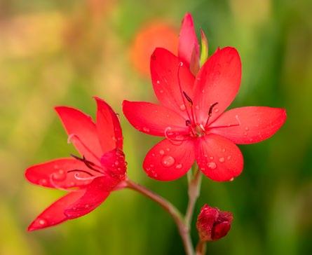 2 Hesperantha coccinea ‘Major' is een prachtige, subtiele plant die het beste tot zijn recht komt met wat ruimte om zich heen. Deze vaste plant heeft smalle, zwaardvormige bladeren en stevige stengels waarop karmozijnrode bloemen ontstaan. Staat graag op een vochtige plek, zoals aan de vijverrand.