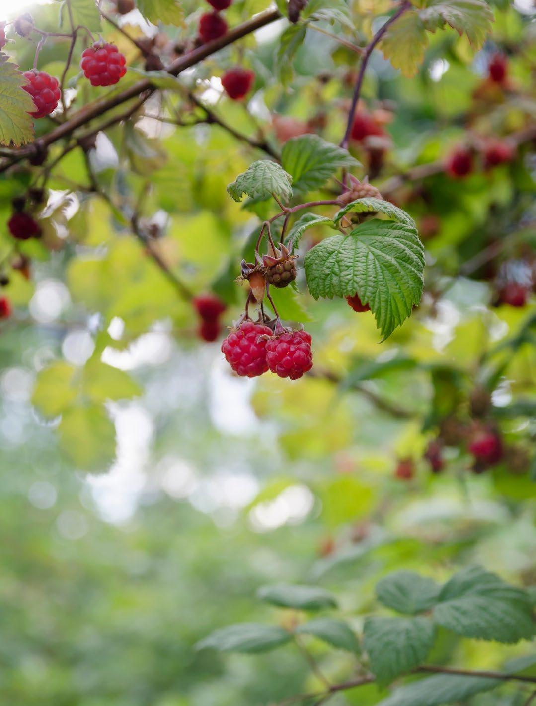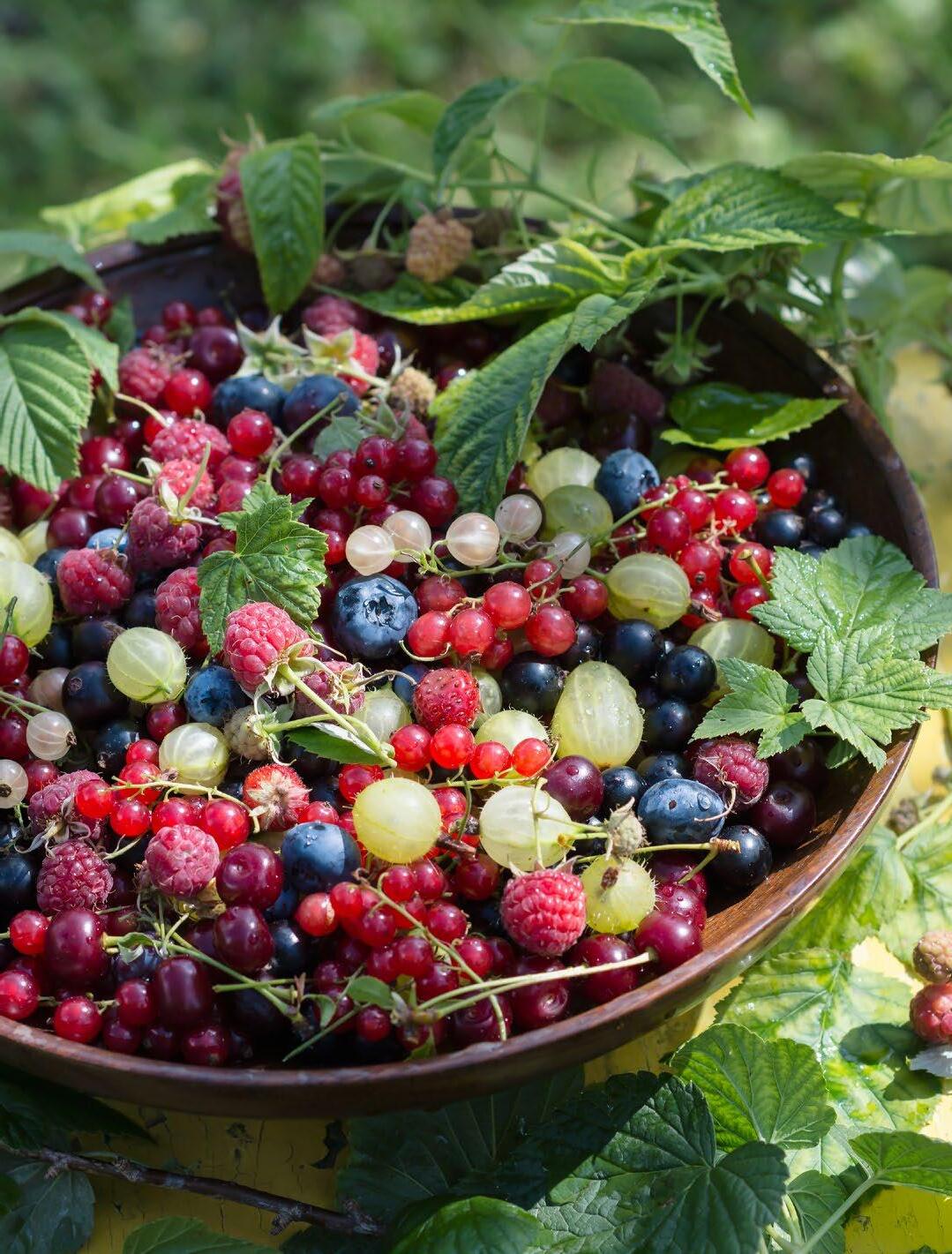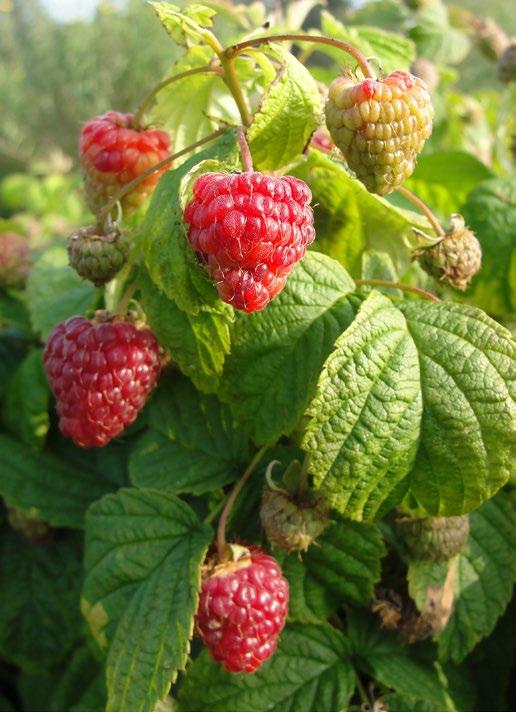 herfstframbozen, braamboos ‘Tayberry’ en kruisbessen.