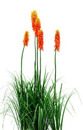 Kniphofia ‘Royal Standard’ kun je prima in je border zetten als opvallende structuurplant. De meerkleurige bloeiaren lijken net vlammen.