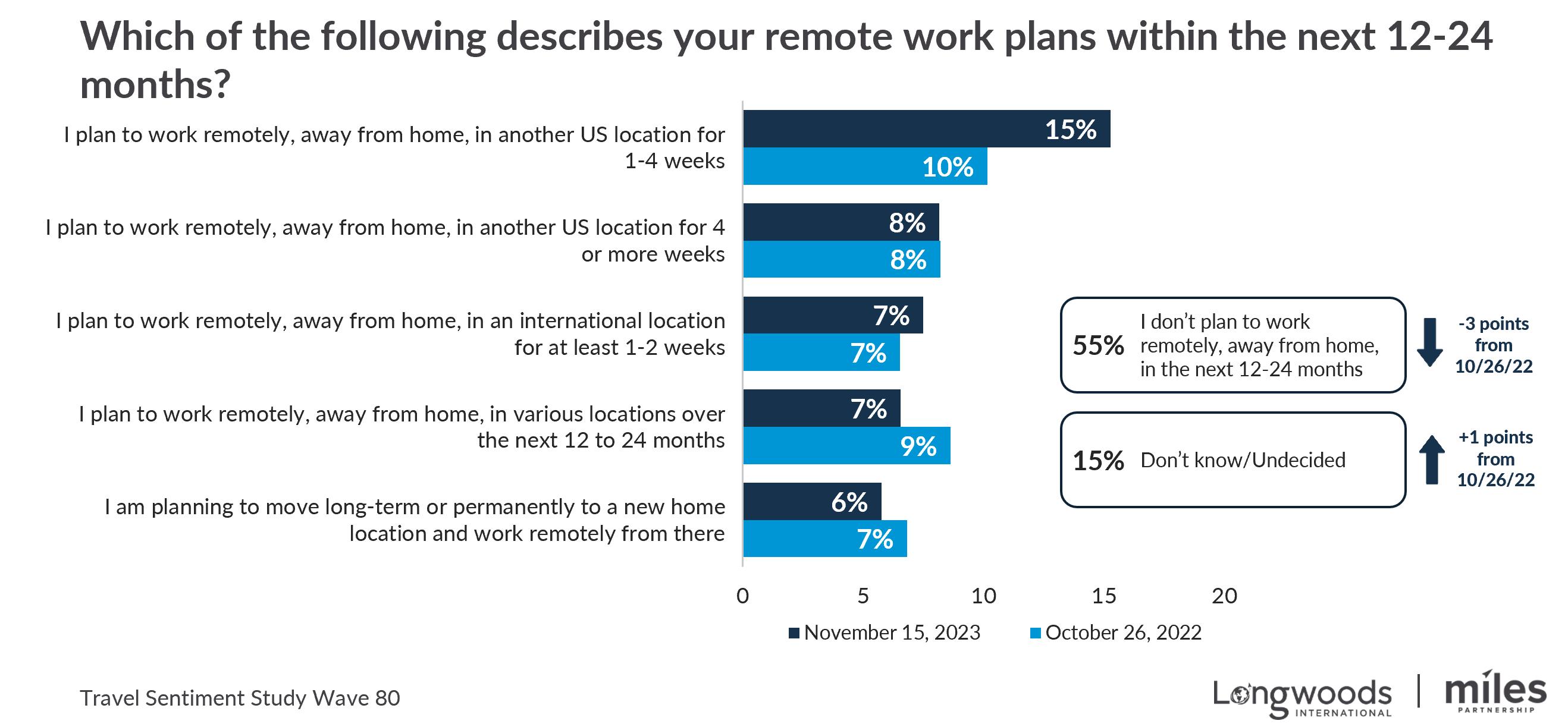 37% intend to travel while working (an increase from 34% in fall 2022)