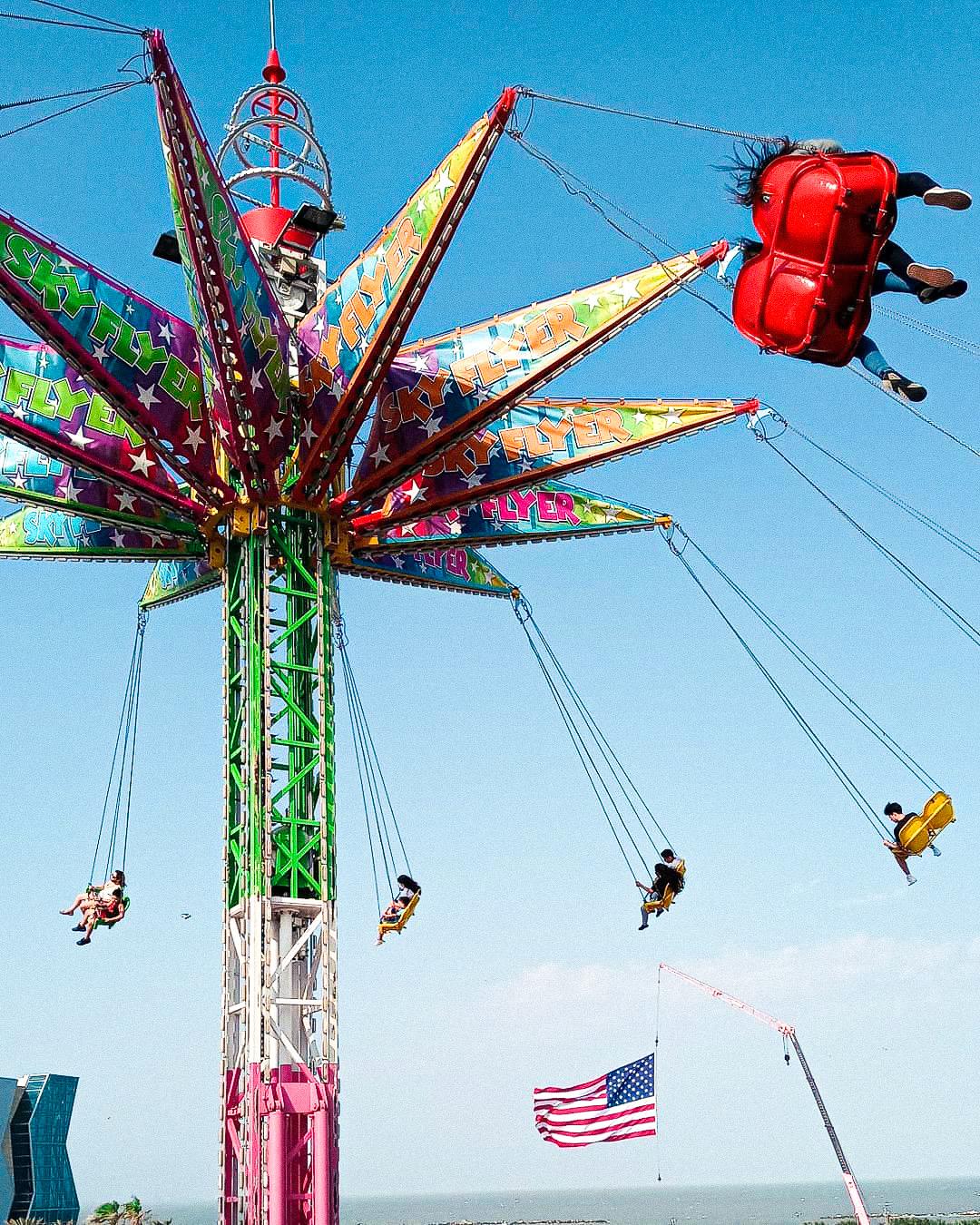 Port Aransas, puedes tomar un ferry a la isla para parasailing y paracaidismo.