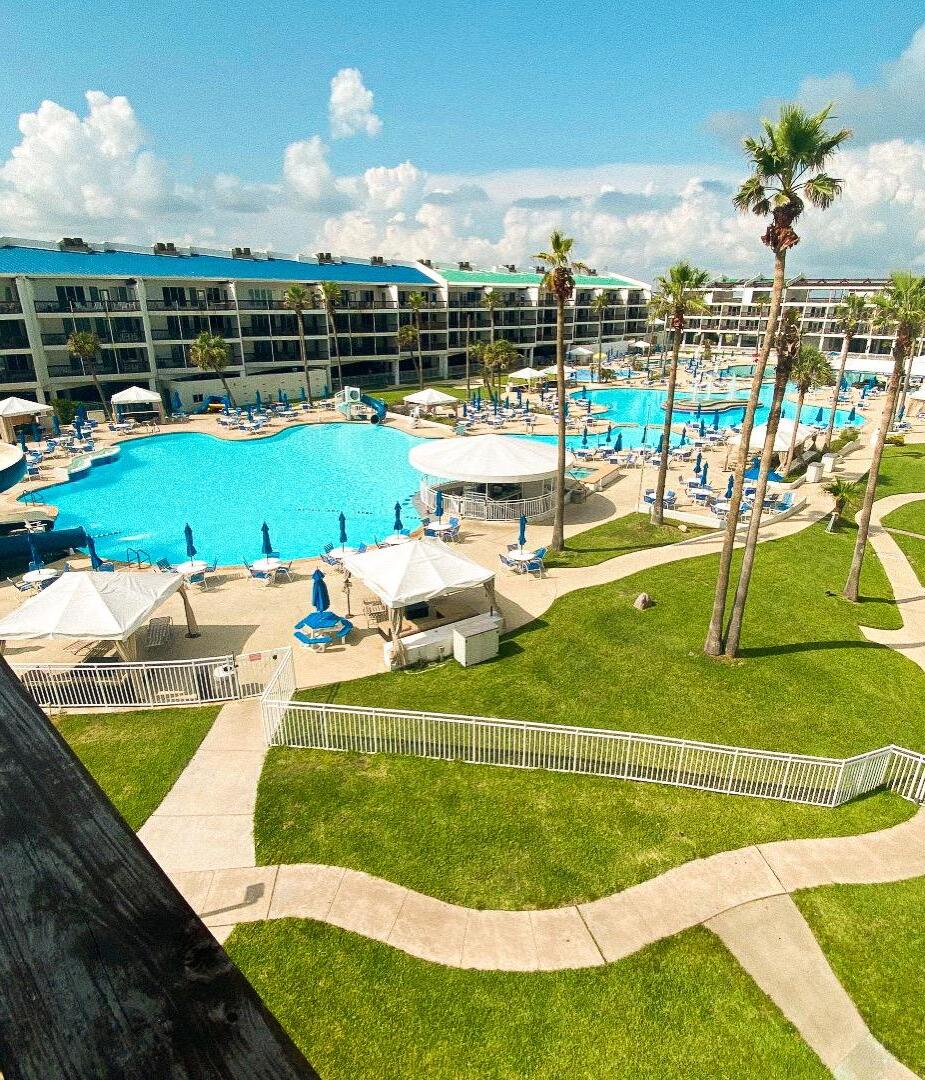 • Este complejo de primer nivel cuenta con 210 condominios frente al mar, ubicados en un enclave de 25 acres que rodea las piscinas tipo laguna más grandes de Texas, está acentuado por palmeras e incluye cascadas escalonadas y toboganes de agua para una escapada perfecta al estilo de un centro turístico.