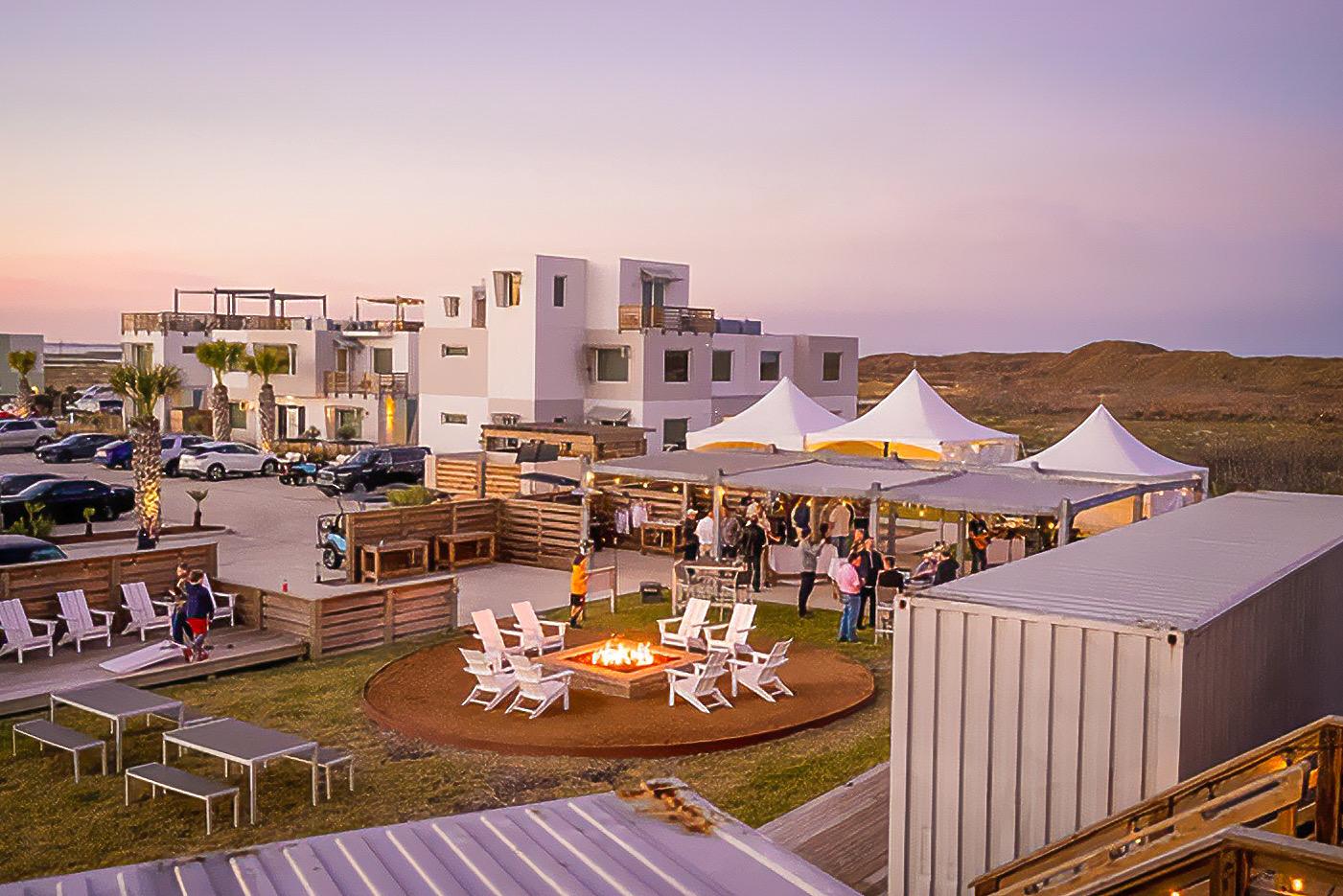 Hotel de Lively Beach en Mustang Island es una isla oasis con 46 acres de propiedad, un paseo marítimo privado a la playa y una piscina con cabañas con sombra.