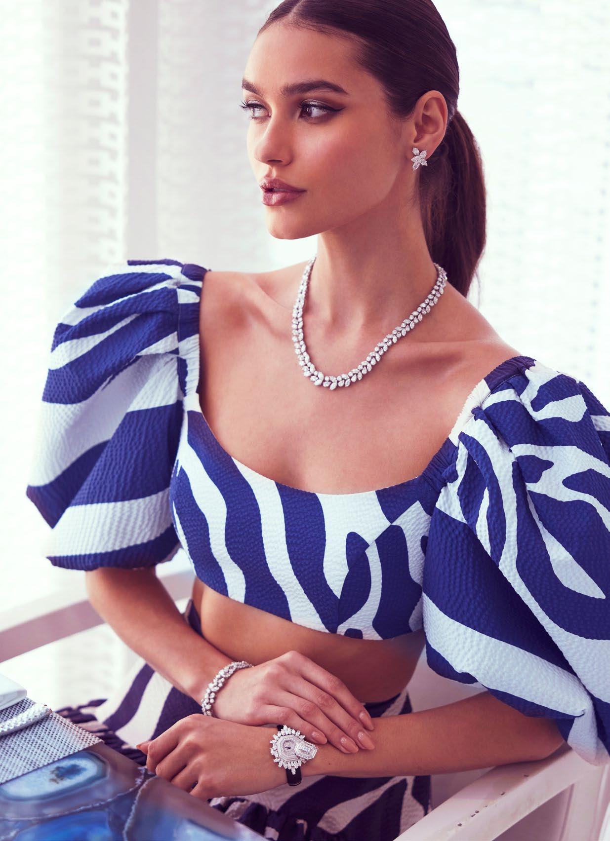 The image aestethic recalls cinema in the 1970, such as Bertolucci’s work, a narrative that is woven into the collection items, enhancing a never ostentatious sensuality experienced as a declaration of freedom. The couture cotton shirt inspired by guêpière corset to the muslin and valenciennes lace bra reinterprets an idea of femininity that combines structure with delicacy, while the floral motifs of the dévoré fabric jacket that looks like worn denim and the trompe l’oeil texture of the printed scuba jacket tells a story of sartorial research and experimentation. Each element goes beyond the simple concept of clothing. With this campaign, Ermanno Scervino renews commitment to making fashion an expression of freedom, aesthetics and storytelling.