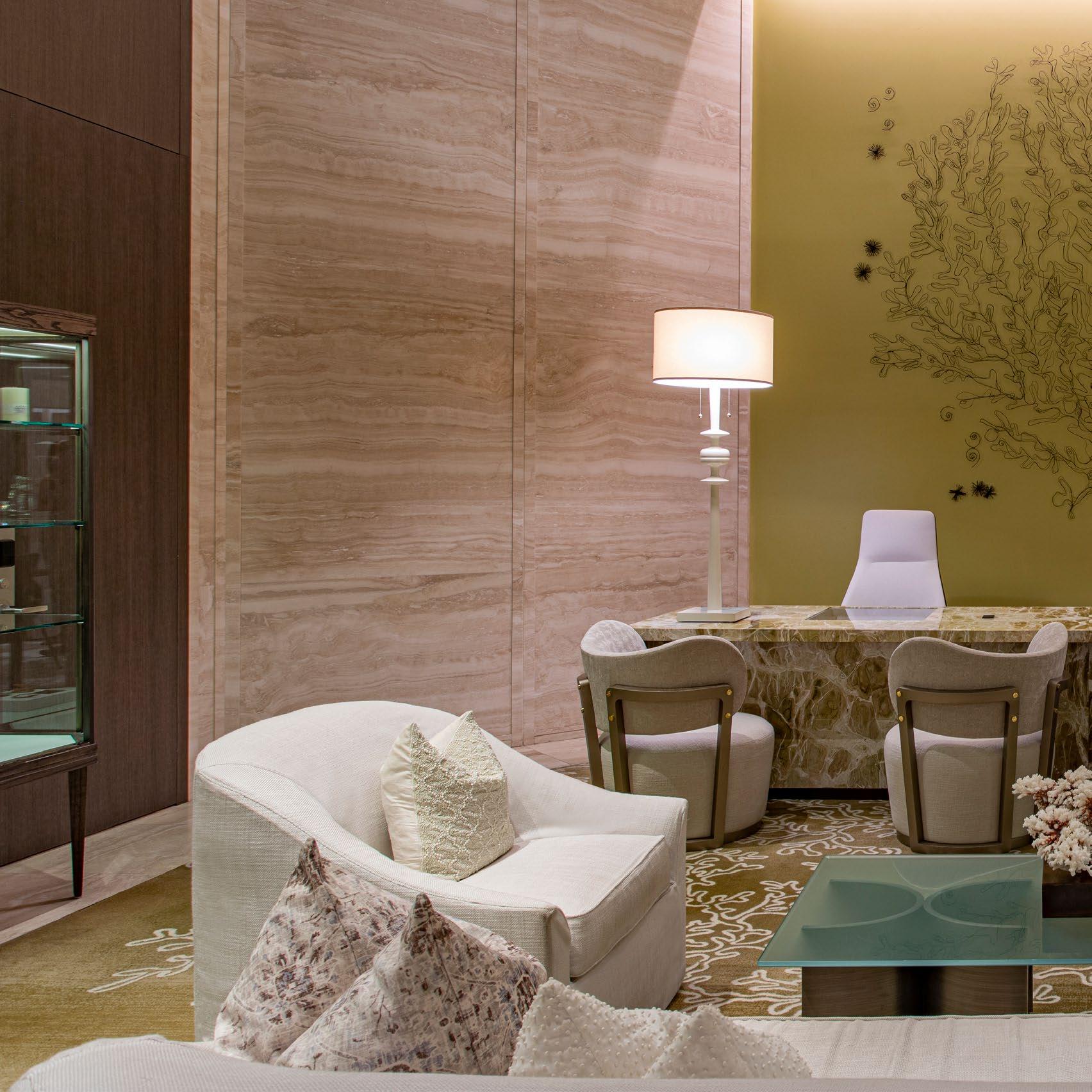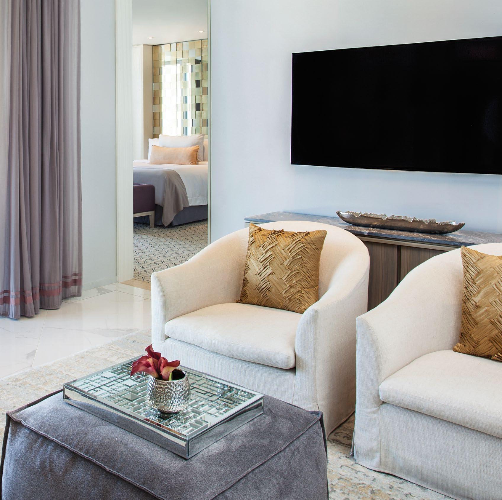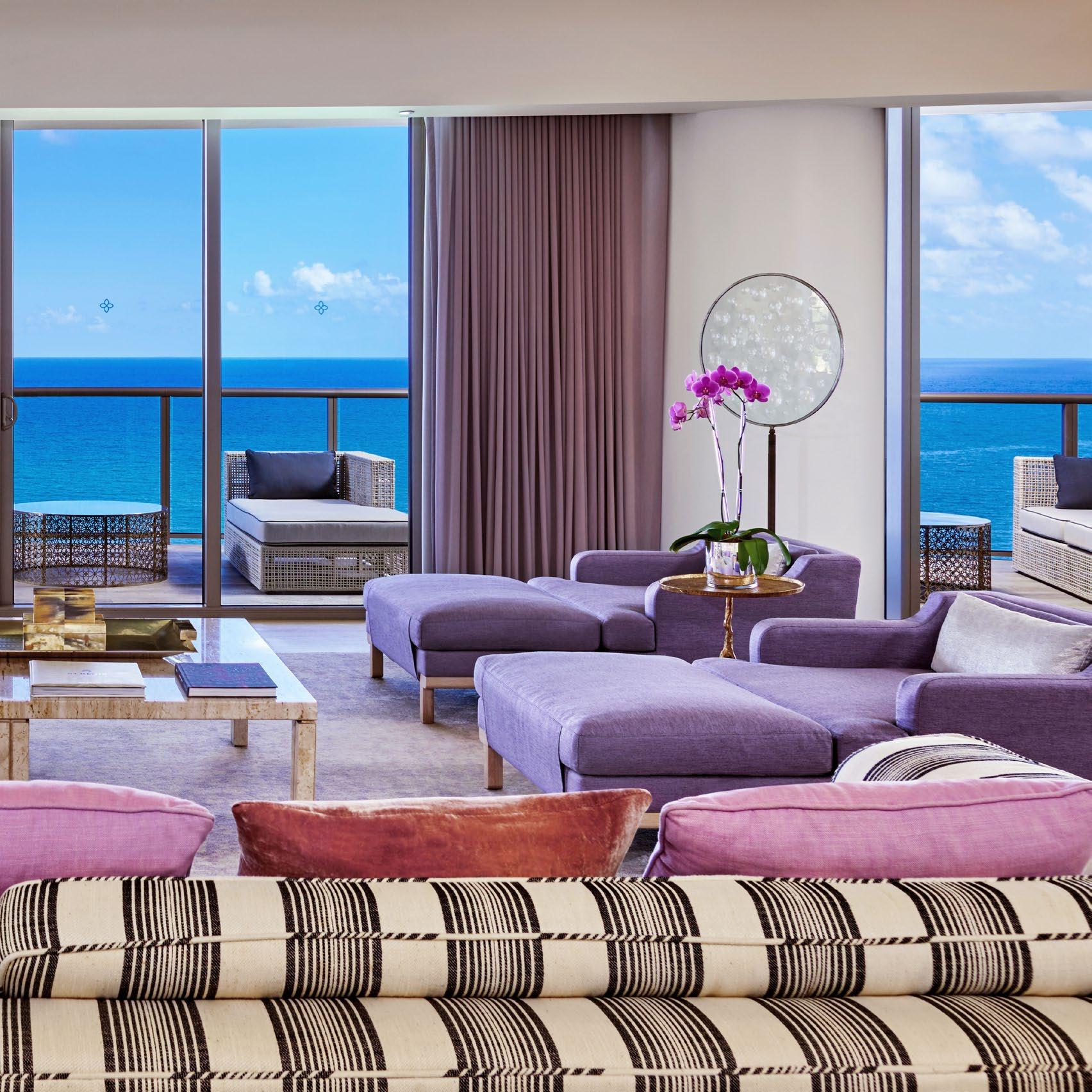The St. Regis Bal Harbour features a total of 213 elegantly appointed guest accommodations starting at 650 sq ft to a 2,950sq ft four-bedroom Palace Suite. Enjoy spacious glass-enclosed balconies with floor- to-ceiling panoramic views of the ocean and white sand beach. Soft, refined color palettes and textures are accented with contemporary artwork, while modern conveniences and technology are incorporated seamlessly into their design.