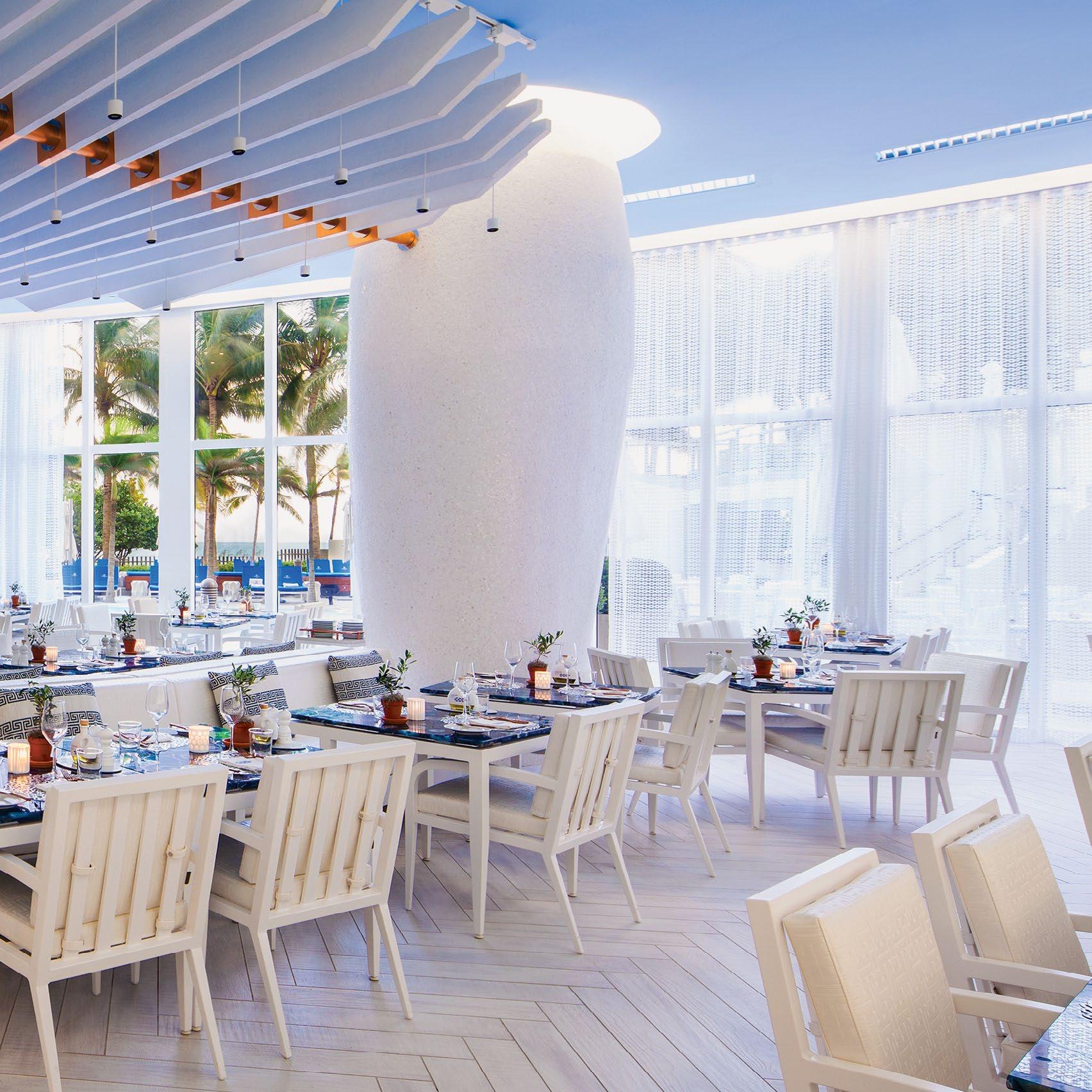 Experience a culinary journey through the Mediterranean, with Miami flair, at Atlantikós. Set amid dazzling white surroundings, accented by Mediterranean blue, our restaurant offers a curated selection of traditional dishes savored best when shared.