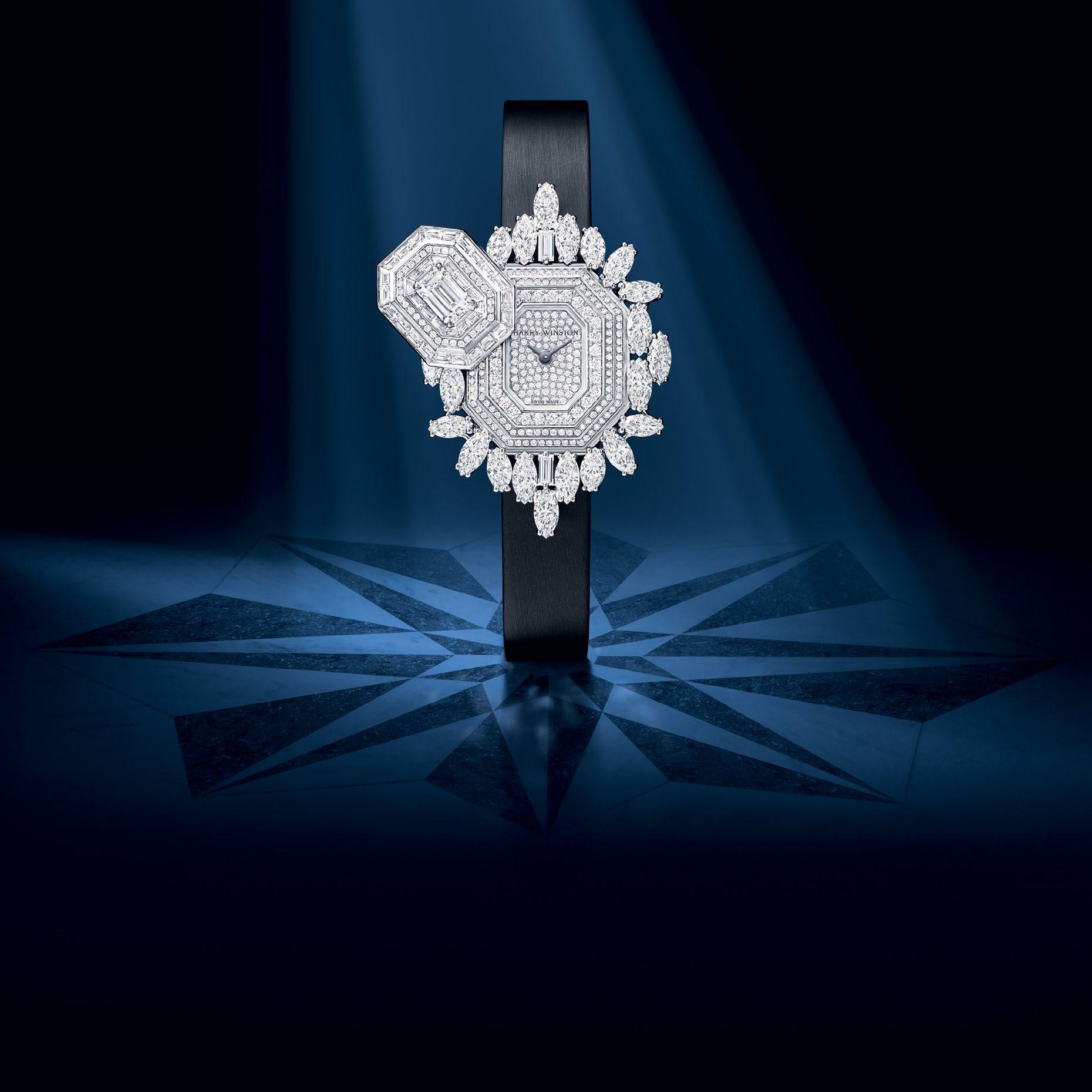 over the crown. The armor-plating of the Bat-suit has given its faceting to the black DLC titanium case. And his grapple hooks shape the carriage of the two flying, triple-axis tourbillons that make Gotham City a true piece of high watchmaking.