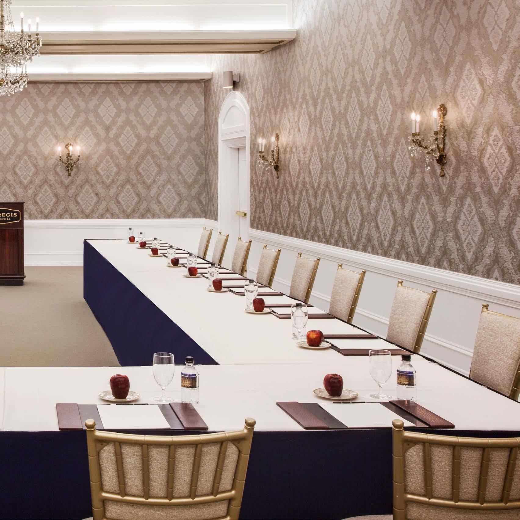 As Washington, D.C.’s ideal meeting and event location, The St. Regis Washington, D.C. has eight distinguished venues. A total of 11,388 square feet ensure successful gatherings from executive round table meetings to grand occasions. The urban oasis of the outdoor Astor Terrace and the spacious elegance of the Astor Ballroom set the stage for luxurious weddings and events.