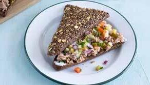 8. Verdeel de tonijn en augurkensalsa over de broodjes.