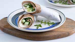 3. Verdeel de reepjes komkommer en de rucola over de wraps.