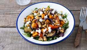 9. Verdeel de rucola in 10 bakjes of kommen en schep de geroosterde groenten erover.
