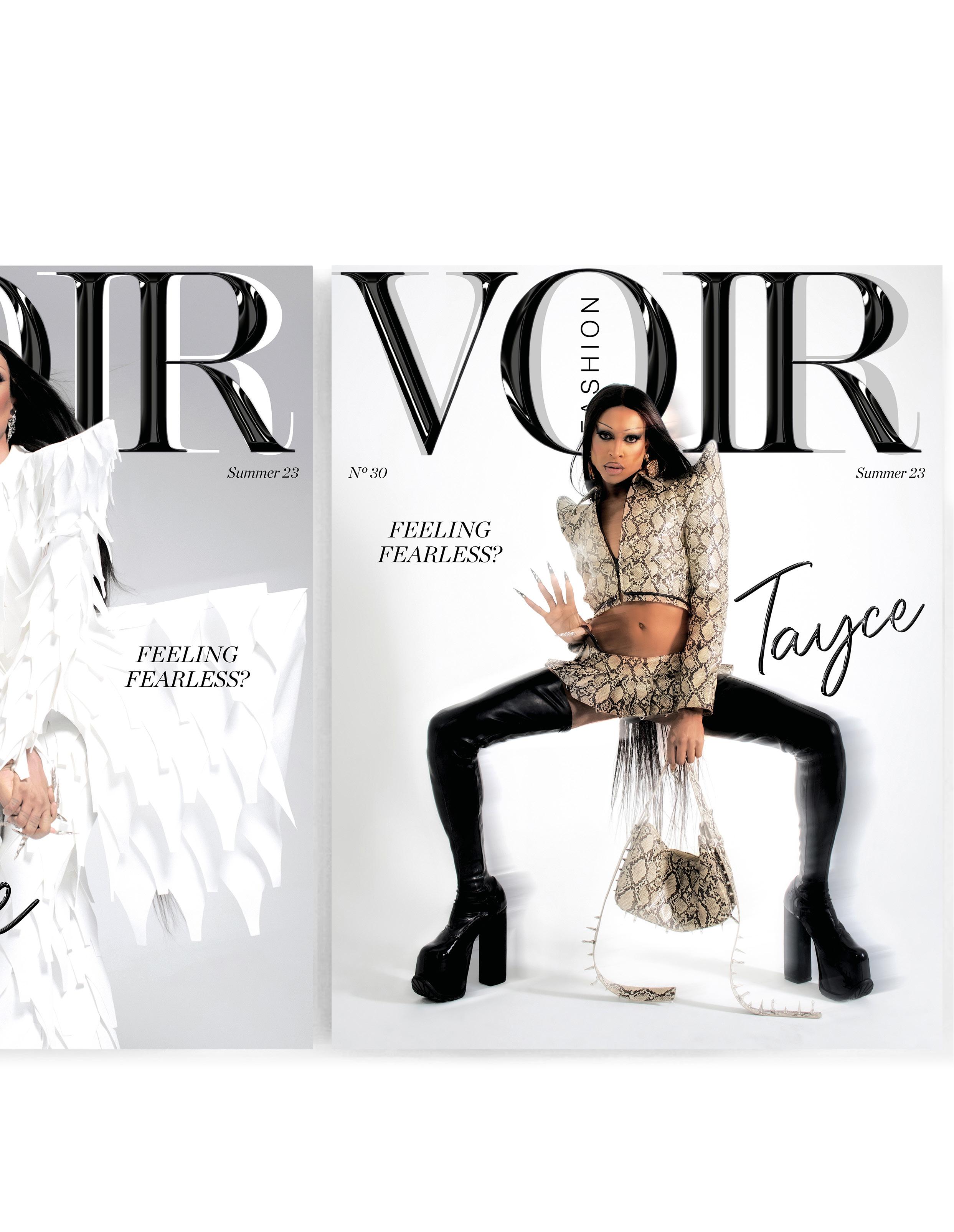 Have you got an alter ego? Like Beyonce’s Sasha Fierce, I like to tune into my alter ego before facing big pitches or challenges. If I was to put a face to it, the person that comes to mind is our fearless and feisty cover star, Tayce! After shooting various covers with American artists across the world, I’m so excited to bring Voir back home to London. In Voir’s exclusive interview with the all-round Glamazon and lip Sync assassin, Tayce shares exactly what it means to be Tayce “Fabulous, fearless and not giving a F***”
