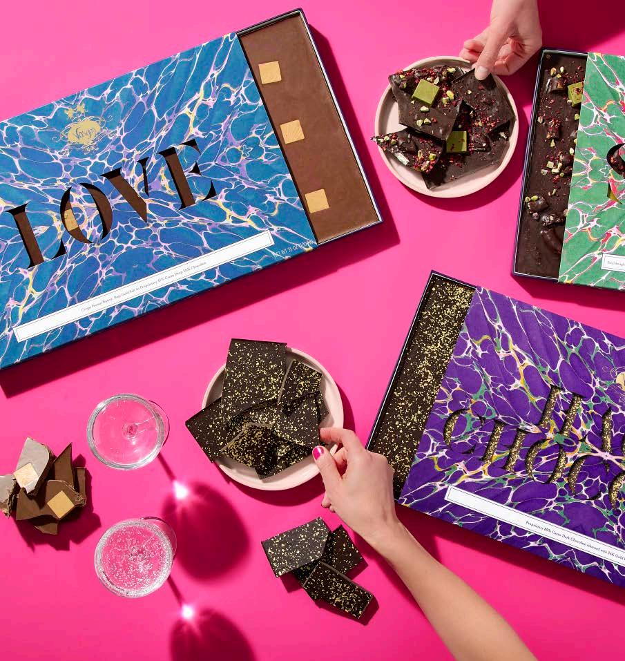The Love Frequency Collection is an expression of the divine masculine and feminine, bioenergetics and series of tones used in Gregorian chants known as Solfeggio frequencies. These sounds are thought to have powerful healing properties. We brought the 528Hz frequency, known as “the love frequency,” or “miracle tone,” used to transform the heart into our kitchens. As the chocolates cooled, they were infused with this frequency. Love has been crystallized into this chocolate.