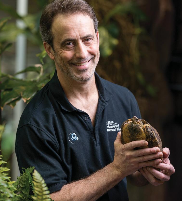 Since most butterflies live only a short time — only a few weeks in this environment — stocking the Living Conservatory is a constant task for Andy Kauffman, who started as an intern at the NCMNS 21 years ago and is now its curator. The butterfly pupae, produced at a breeding facility in Costa Rica, are carefully packaged and shipped to Denver, then on to North Carolina. It is an expedient twoto three-day trip, with vigilance at each step to prevent the introduction of agricultural pests (hence the double-lock doors of the conservatory that prevent the butterflies from getting out into the world).