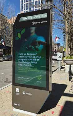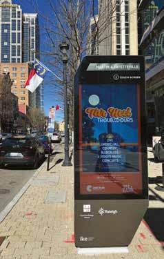 As of press time, seven digital kiosks had been installed at locations like West and Peace Streets, along Glenwood Avenue and Martin Street. Fifteen will be installed over the next year or so, located strategically near areas like the North Carolina Museums of History or Natural Sciences, Marbles, the convention center, Warehouse District and Glenwood South.