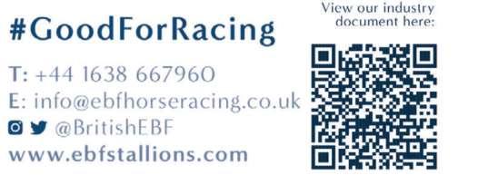 Second Race 2.14 - THE BRITISH EBF FILLIES’ RESTRICTED NOVICE STAKES (CLASS 5) (for horses in Bands C and D) (DIV I) (GBB RACE) Distributed in accordance with the Stakes and Prize Money Code £5400 to the winning horse The second to receive £2535, the third £1268 and the fourth £634. for novice two yrs old fillies only, which are E.B.F eligible, which are in Bands C and D. Enter by noon, October 8th and pay £50 stake, Declare by 10.00 a.m. October 12th. Weights: 9st 2lb each Penalties, for each race won 6lb (Sellers and Claimers excluded for the purposes of penalties) Allowances: Band D from Band C 2lb THE TRUSTEES OF THE E.B.F have kindly contributed £5000 towards the prize money for this race 12 entries at £50. - Closed October 8th, 2025. Owners Prize Money. Winner £4267; Second £2133; Third £1067; Fourth £533. (Penalty Value £5400) SS SEE PAGE 10 FOR THIS RACE.
