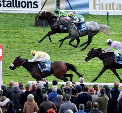 Fourth Race 3.00 -THE DARLEYDEWHURSTSTAKES (CLASS 1) (Group 1) Distributed in accordance with the Stakes and Prize Money Code. £283550 to the winning horse The second to receive £107500, the third £53800, the fourth £26800, the fifth £13450 and the sixth £6750. for two yrs old colts and fillies only Enter by noon, August 12th and pay £2150 stake, Second Entry by noon, September 15th and pay £10500 stake, Scratch by noon, September 16th or pay £2750, Confirm by noon, October 6th and pay £1350, Supplementary Entry by noon, October 6th and pay £35000 stake, Declare by 10.00 a.m. October 9th. Weights: Colts 9st 3lb; fillies 9st DARLEY has generously sponsored this race and will kindly present a trophy to the winning owner, trainer, jockey and breeder ofthe winning horse. In addition, they will award a £200 cash prize to the stable employee responsible for the best turned out horse in this race (No confirmation of entry is required for Supplementary entries) 52 entries, 26 at £2150, 12 at £4900, 14 at £6250. - Closed August 12th, 2025. Owners Prize Money. Winner £222800; Second £91450; Third £45750; Fourth £22850; Fifth £11450; Sixth £5700 (PenaltyValue £283550) A SS SEE PAGE 38 FOR THIS RACE.