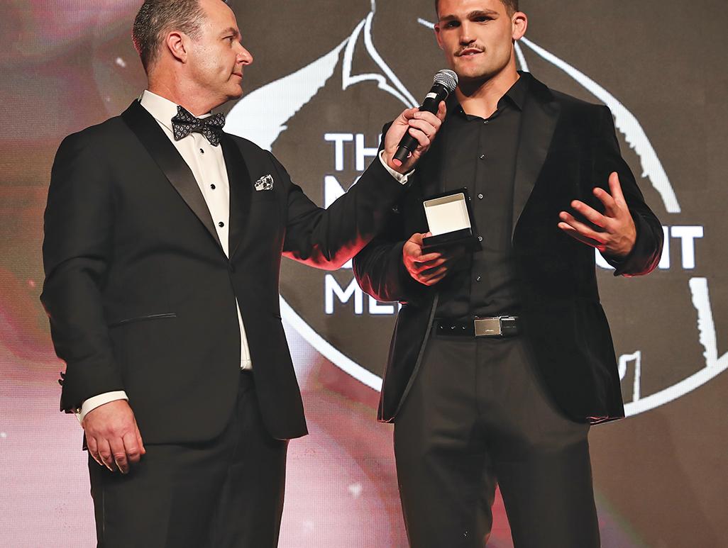 ! Touching honour for Merv’s son: Merv Cartwright’s son Michael made the trip down from Queensland to present the award named in his father’s honour to Nathan Cleary on Tuesday night. Michael, who played one game for Penrith in 1994, spoke glowingly about his father’s legacy at the Panthers before presenting the big award of the night.