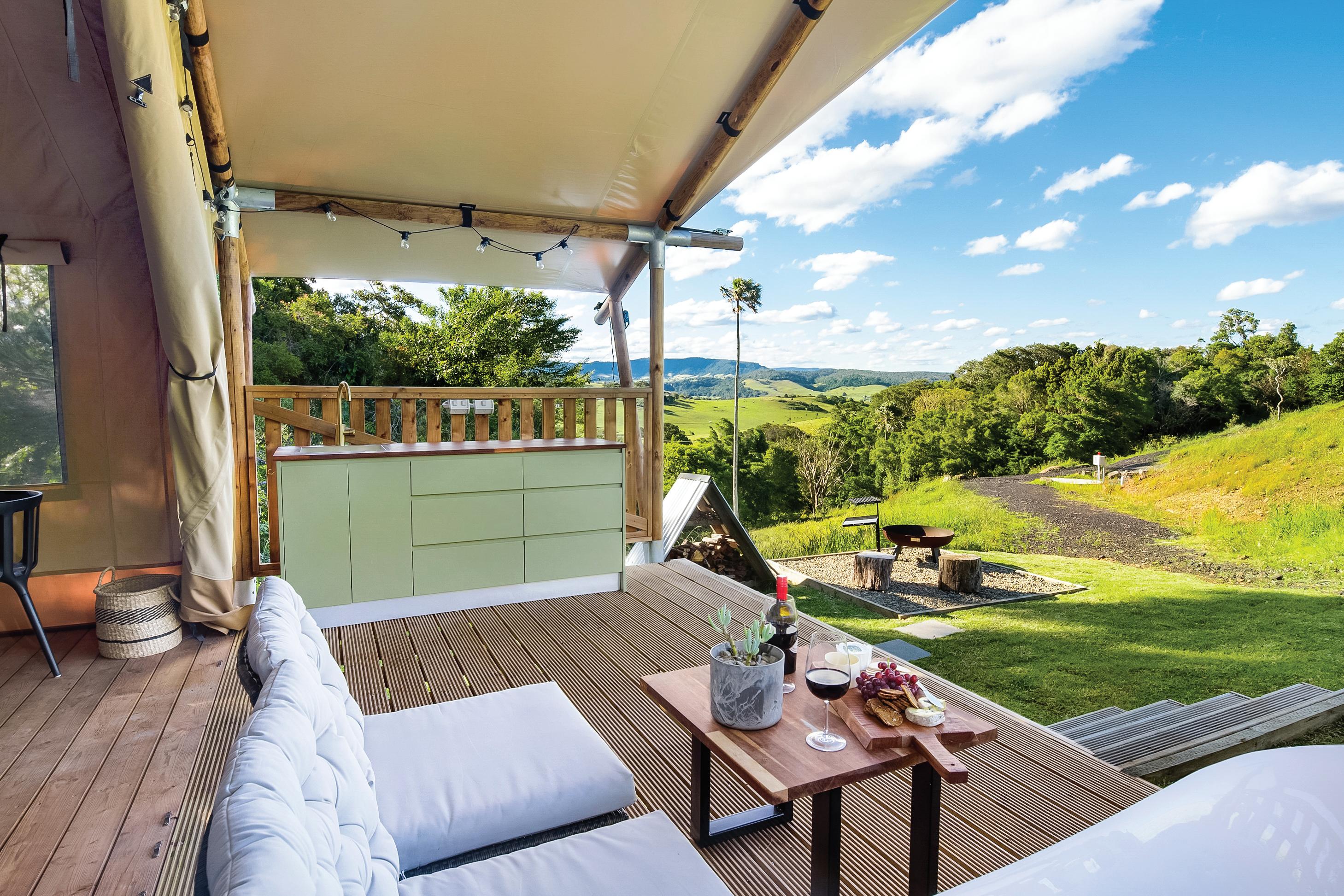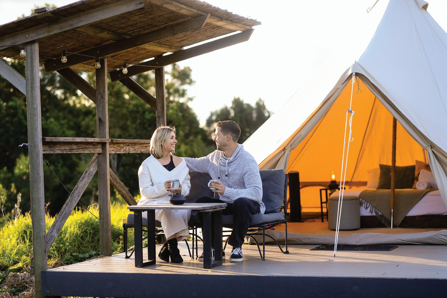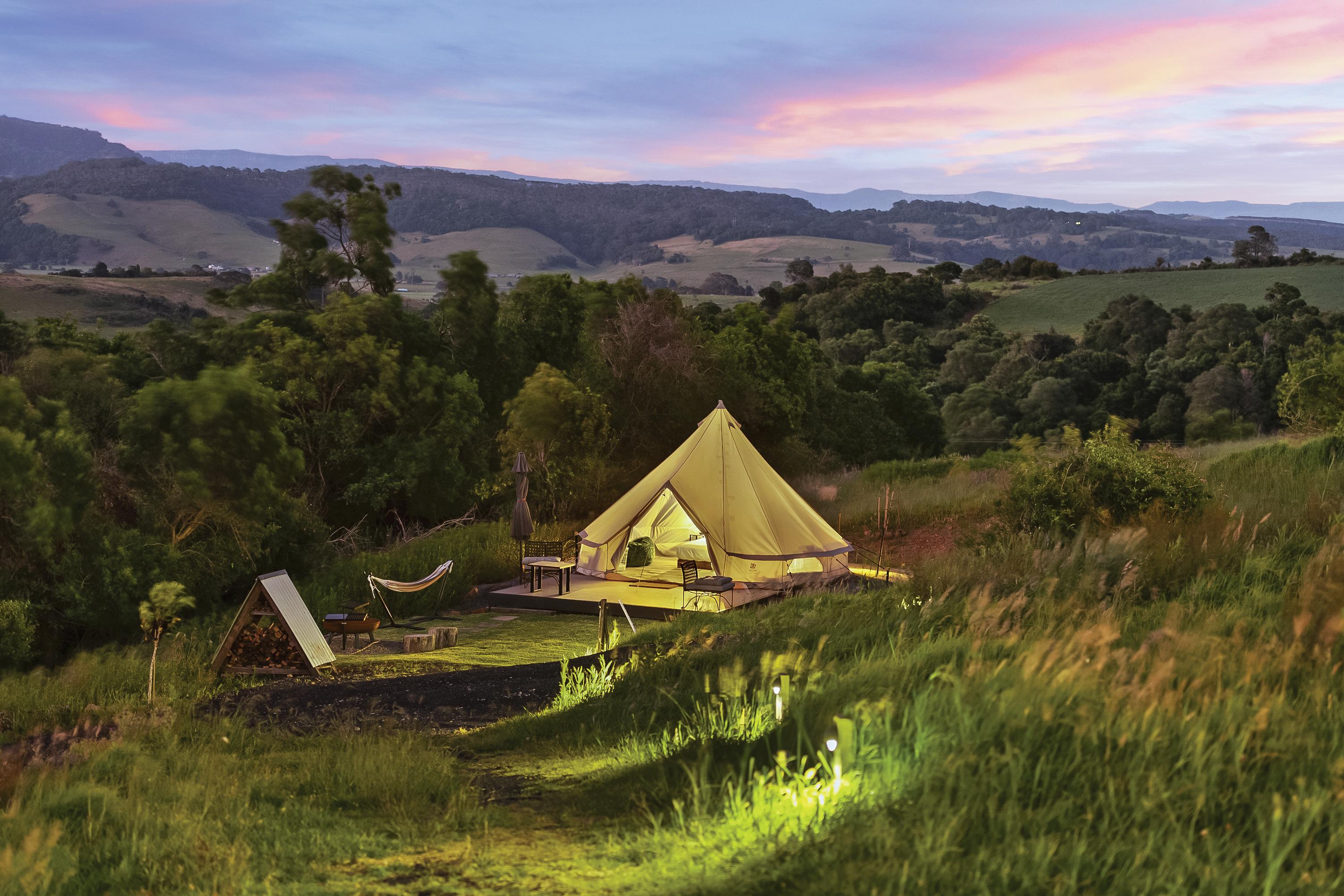 All our tents feature their own private fire pit and deck with breathtaking views across the beautiful green rolling hills of Jamberoo.