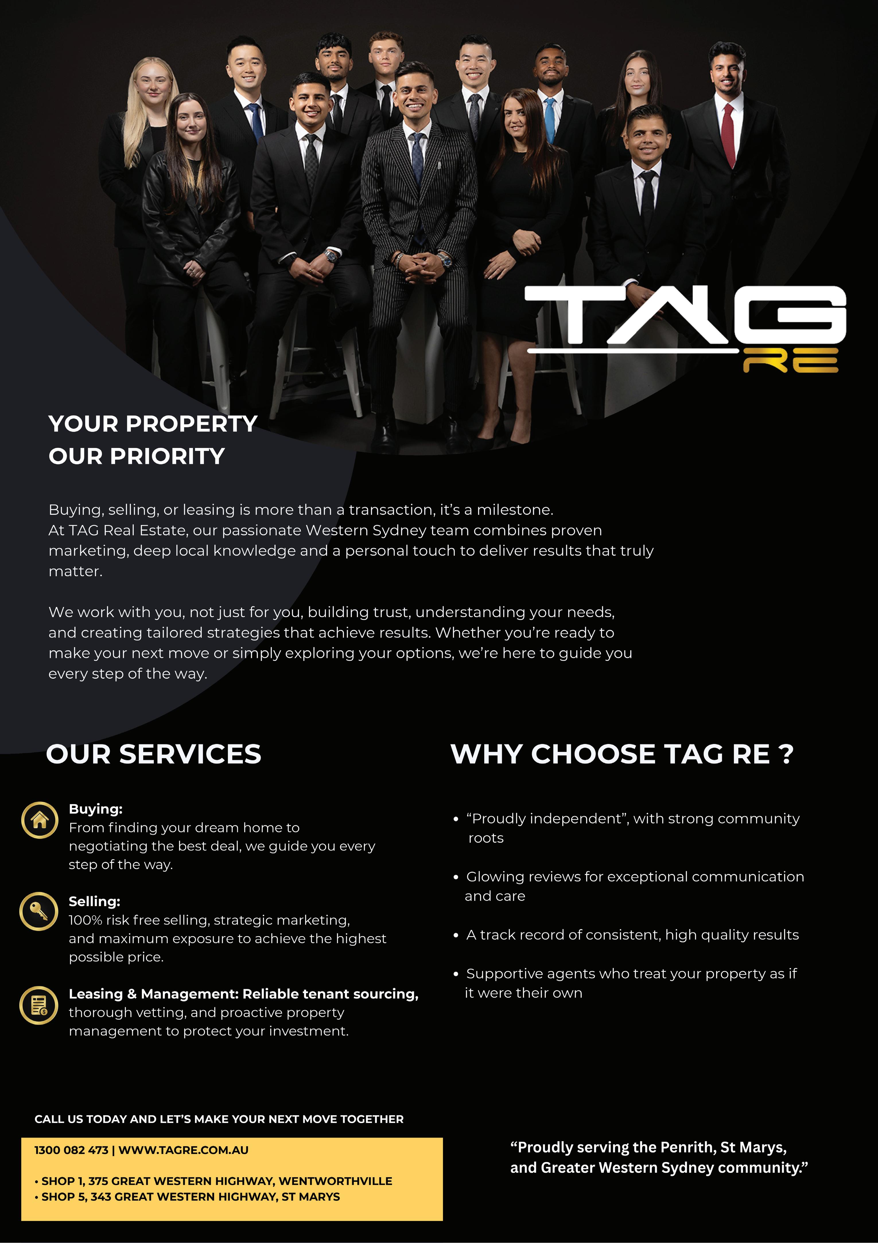 Connect with the TAG Real Estate team on 1300 082 473, info@tagre.au or www. tagre.au.