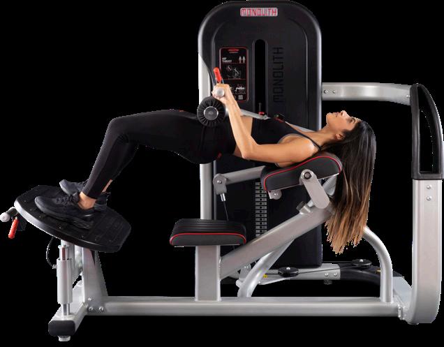 n Tilting backrest that follows the user movement at the beginning of the exercise. The Hip Thrust generates a rising load curve during simultaneous extension of the hips and trunk, opening and closing the hip joint, and ensures an efficient and physiological work on the glutes muscles involved.