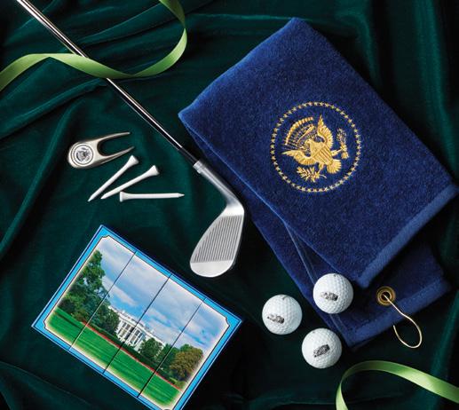 Custom-packaged Titleist Pro V1 golf balls set in sleek sleeves along with beautiful depictions of the North Portico of the White House. The golf balls feature the elegant White House Historical Association logo. Made in USA