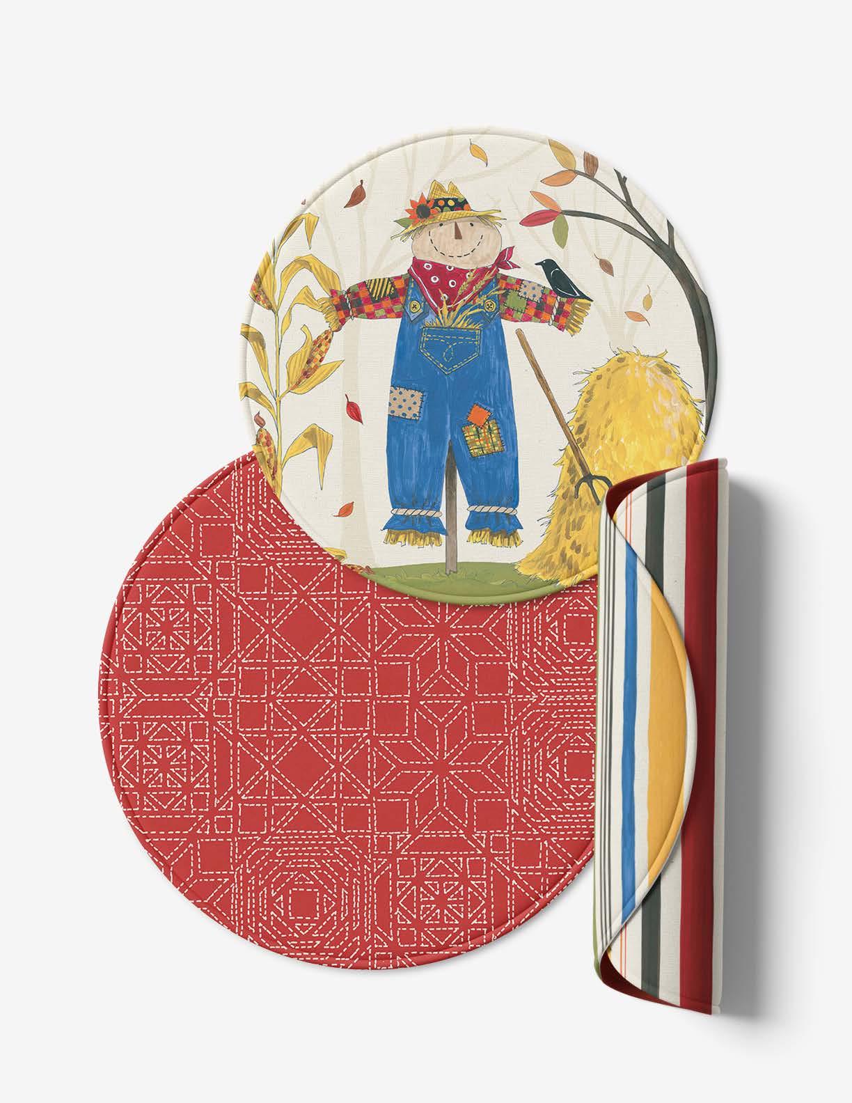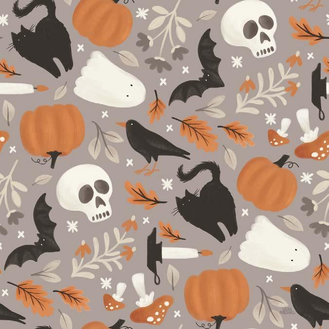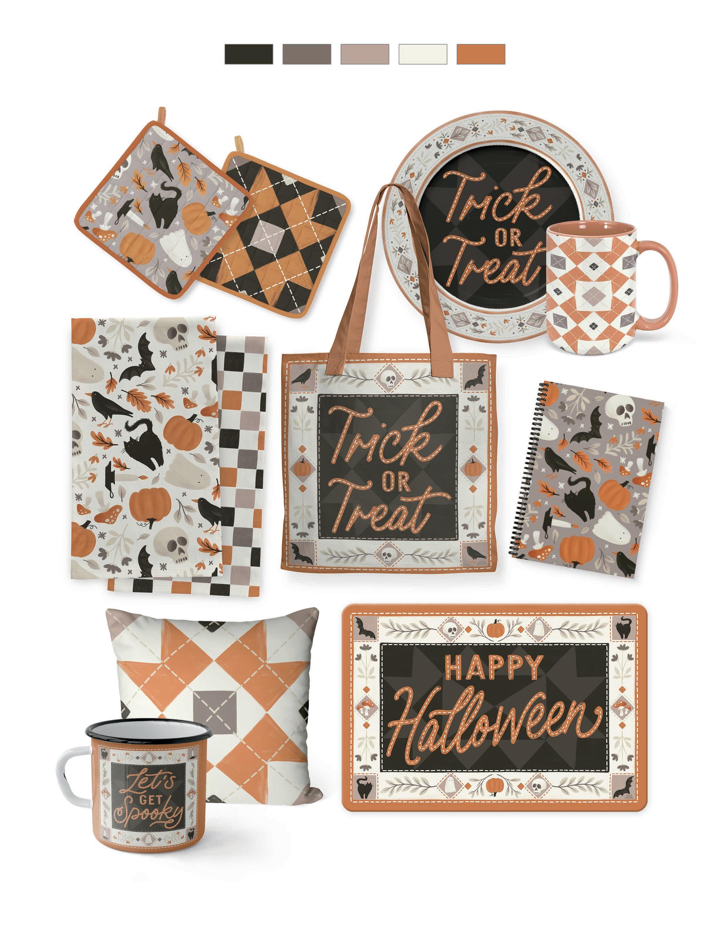 Halloween just got a retro upgrade. With muted tones and a quilting feel, this look combines playful patterns with classic spooky icons. Perfect for bringing that Halloween charm without going over the top—think vintage vibes with a fun, stitched-together twist. It’s spooky meets cozy.