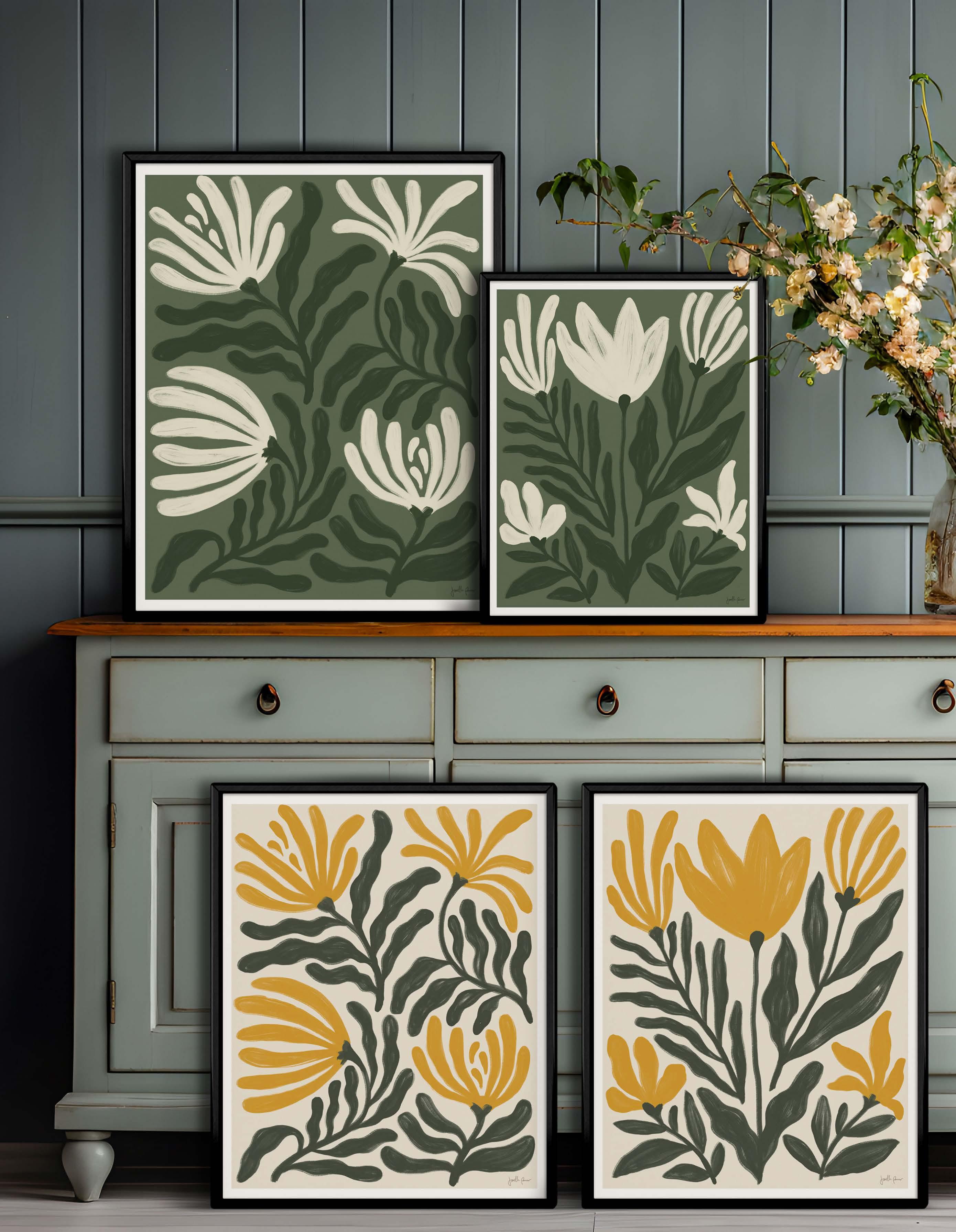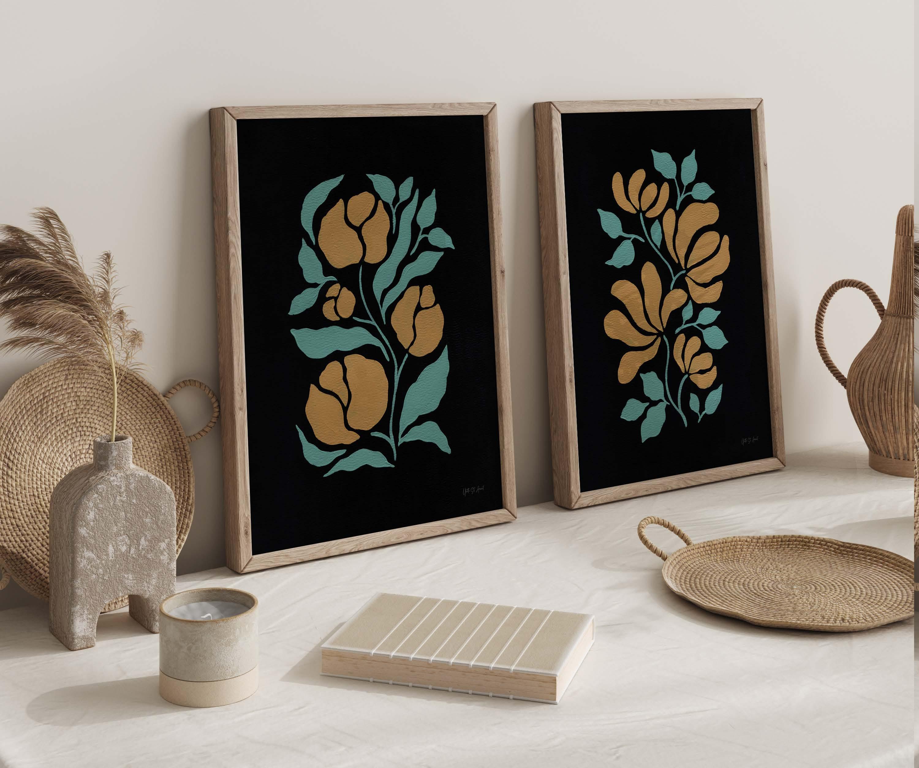 Retro florals, reimagined. This trend takes bold, simple silhouettes and infuses them with a touch of 70s nostalgia. Think playful yet minimalist, with a color palette that’s both fresh and familiar. Perfect for adding a bit of flower power to your walls—without overdoing it.