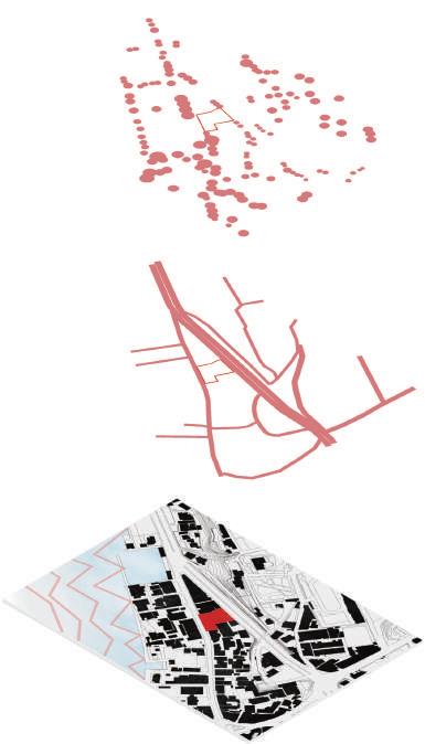 燈,速限,道路寬窄,馬路上的行人,再與不同的交通工具作對應 ,刪減掉不需要的部分,進行分析。 分析因子決定 基地周遭交通,可以發現 基地南北側交通量最大。 基地周遭量體紋理,基地 正位於交叉口附近,速度 變化,加減速等等明顯。 基地周遭豐富度高,具備 多元商家,道路系統也較 紊亂,有山景也有河流。 基地周遭人潮,位在老街 ,觀光商業帶,人潮眾多 ,須納入考量。