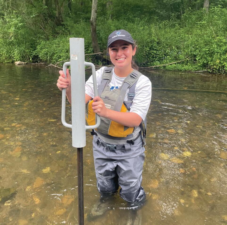 I worked with Professor Humston this summer investigating the decline of trout populations in the Jackson River, about 45 minutes west of Lexington. My role was to examine whether high flows impact trout spawning success by destabilizing spawning gravel and altering habitat through sediment starvation. As a team, we mapped potential spawning sites, and I used scour chains to measure gravel bed fill and scour, quantifying changes during peak flow periods when significant bed-load transport and streambed reshaping occur. This research was an incredible experience that gave me firsthand exposure to fieldwork and data collection, deepening my understanding of conservation practices. (Julia subsequently won the Best Undergraduate Poster Award at the January 2025 Virginia Chapter American Fisheries Society Conference for her poster titled, “Understanding High Flow Impacts on Trout Spawning Habitat Using Scour Chains and Tributary Mapping”.)