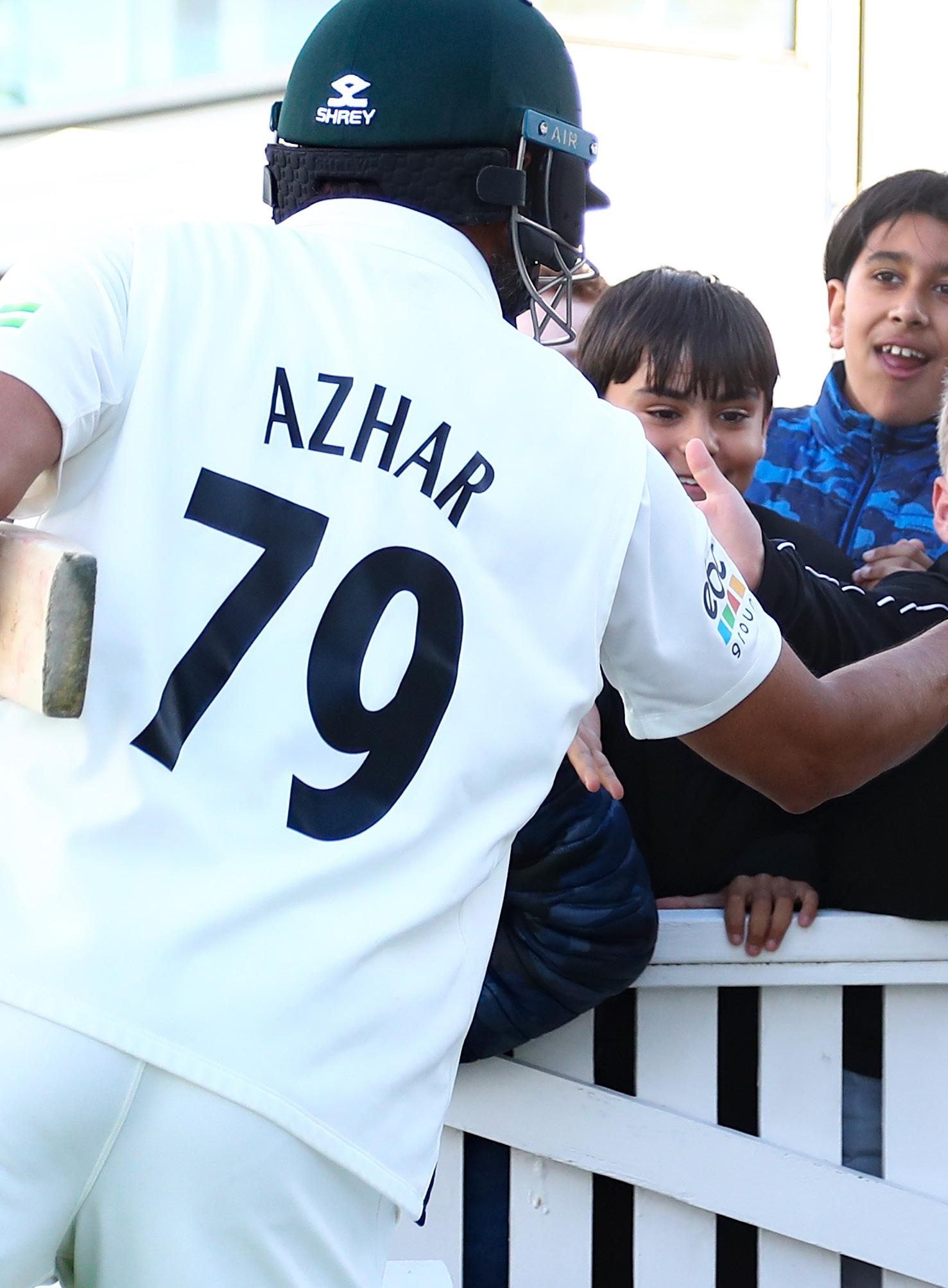 • Azhar’s double century against the Foxes before heading straight off the field after batting all day to share the moment with young supporters