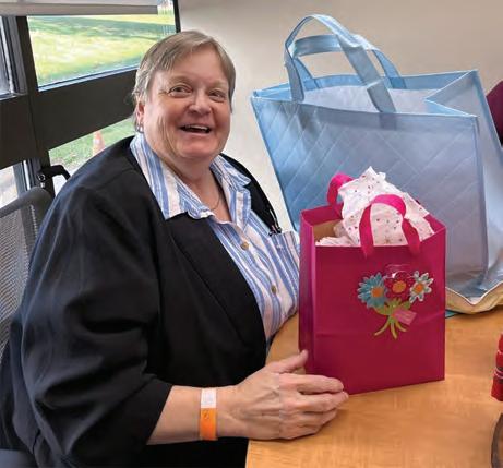 Pamela Bowman opens gifts at her retirement party at Duke Regional Hospital in November 2022. Courtesy of Pamela Bowman.