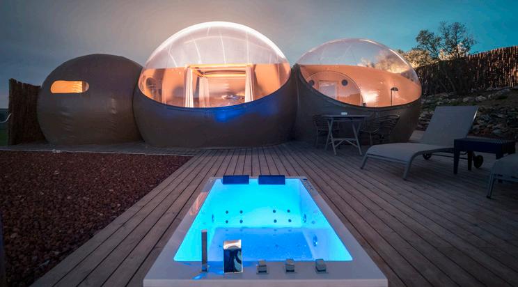 Located in the heart of the countryside, their exclusive bubble rooms offer panoramic views of the sky while ensuring the privacy and comfort of a boutique hotel. Each room features a private garden, outdoor bath, and telescope, creating a unique experience that blends sustainability, design, and deep connection with nature.