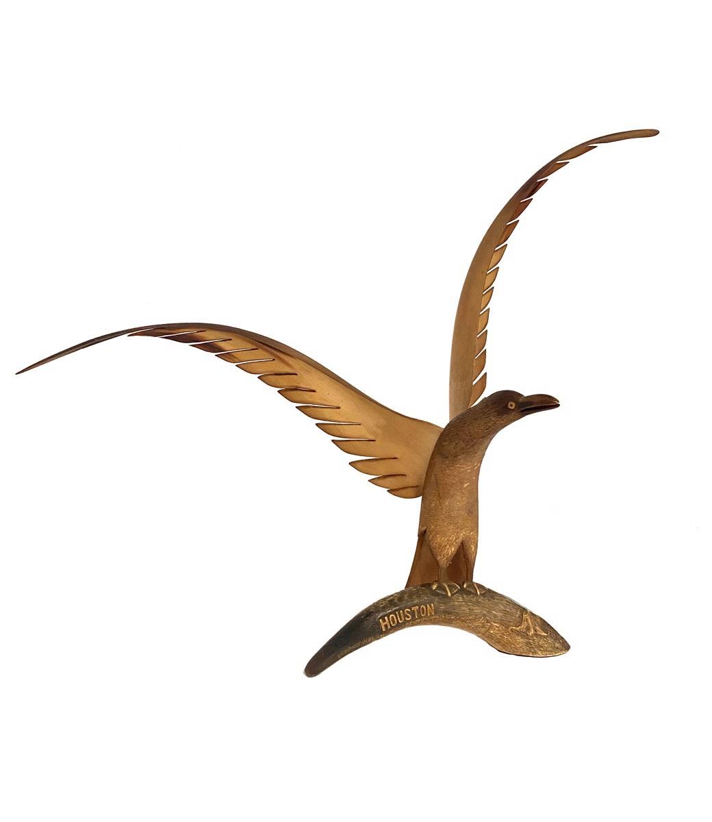 DS-64: large blonde carved horn bird on horn, "Houston" on base, c.1915 carved horn