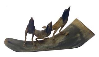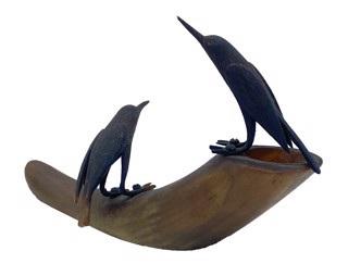 DS-59: dark carved horn sculpture with two birds on horn, c. 1915 carved horn 6.87 x 8.50 in