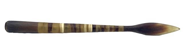 Dan Super DS-5: inlayed horn back scratcher, c. 1915 carved horn 16 x 1.25 in