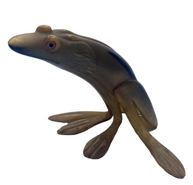 DS-44: large carved horn frog with dark head,c.1915 carvedhorn 10x3.75in