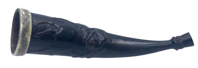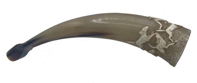 Dan Super DS-73: Carved blow horn (with stag, doe and dog), c. 1915 Carved Horn