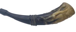 Dan Super DS-84: carved powder horn on three horn legs c. 1915 carved horn
