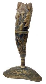 DS-80: carved horn drinking cup on stand; portrait of artist "Texas", c. 1915 carved horn