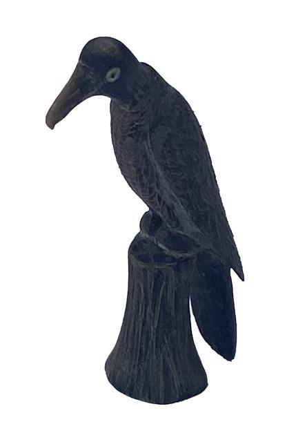 DS-39: extra small carved dark horn bird on base (large beak),c.1915 carved horn 2.62 x0.75 in